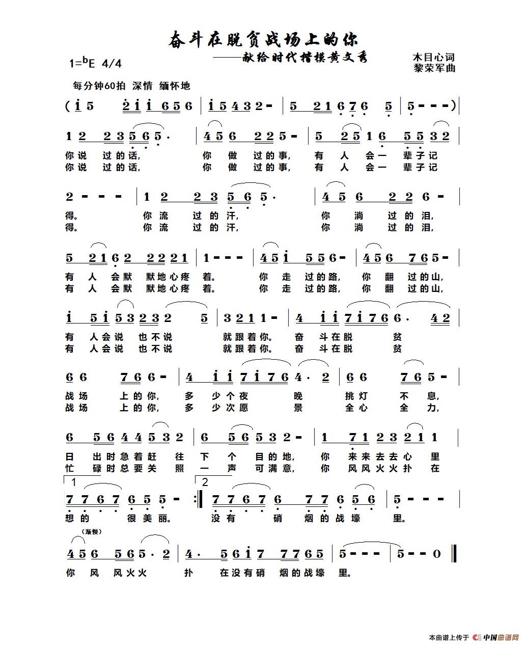 关于《奋斗在脱贫战场上的你》曲谱的评论