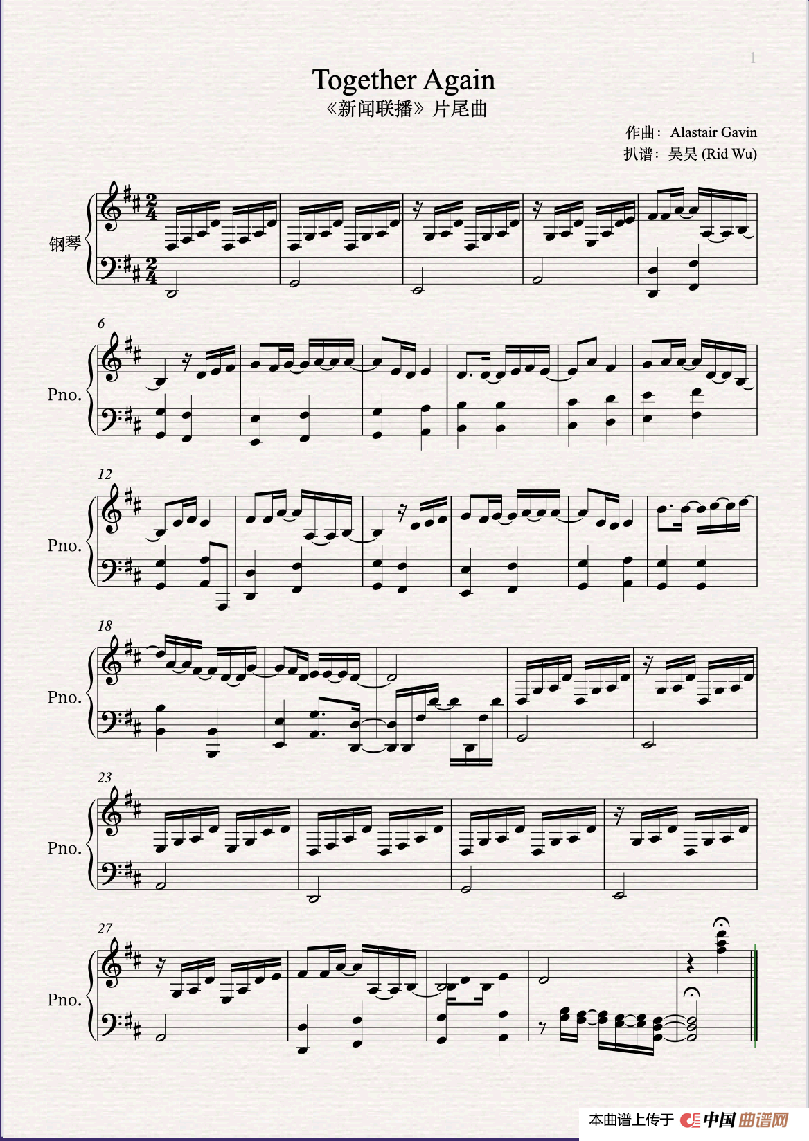 Together Again(新闻联播片尾曲 钢琴独奏)
