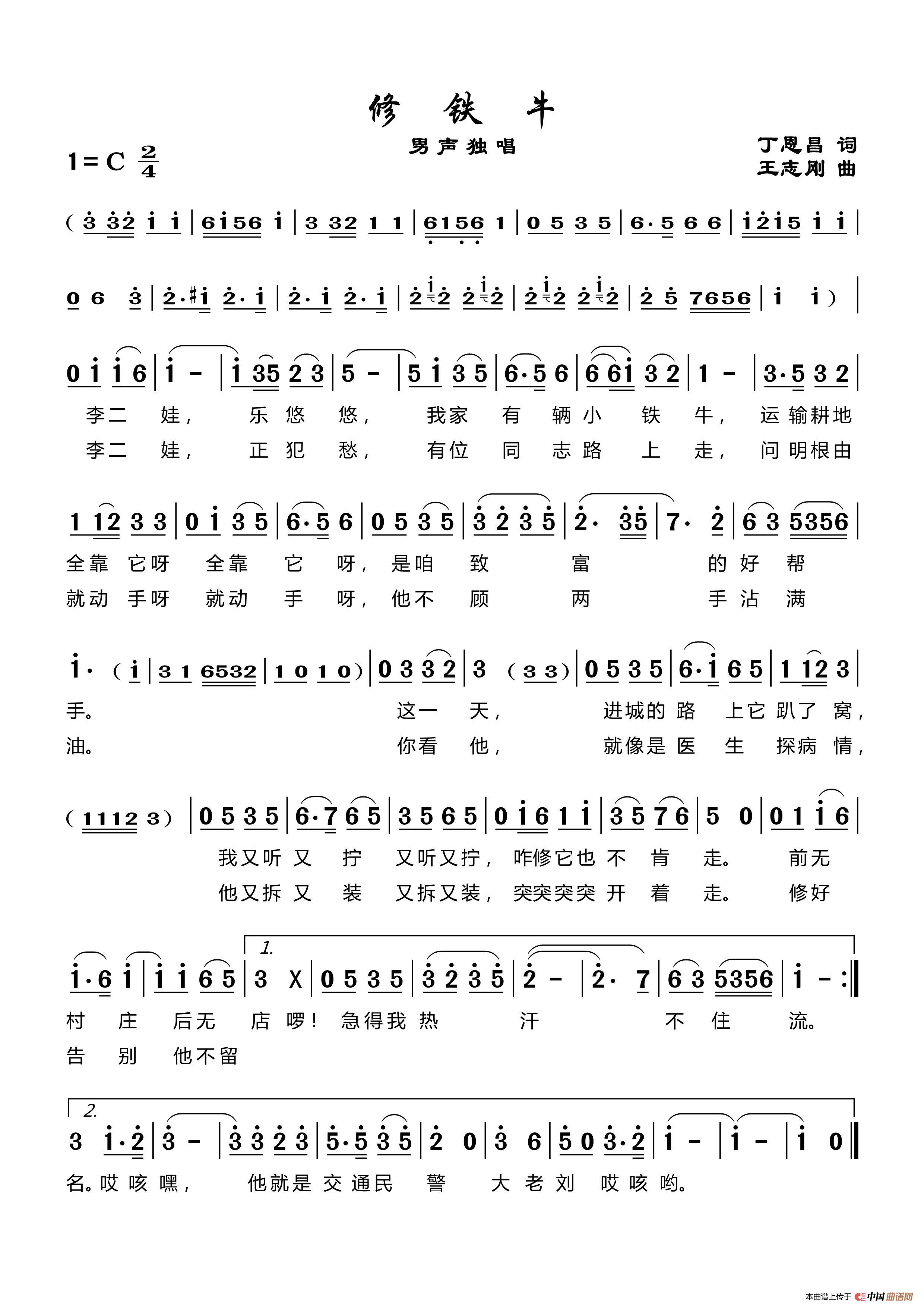 关于《修铁牛》曲谱的评论