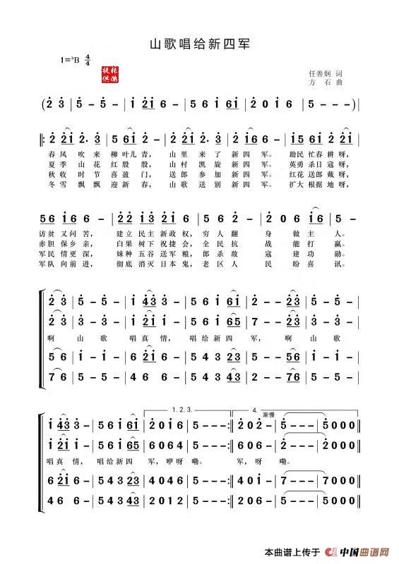 关于《山歌唱给新四军》曲谱的评论