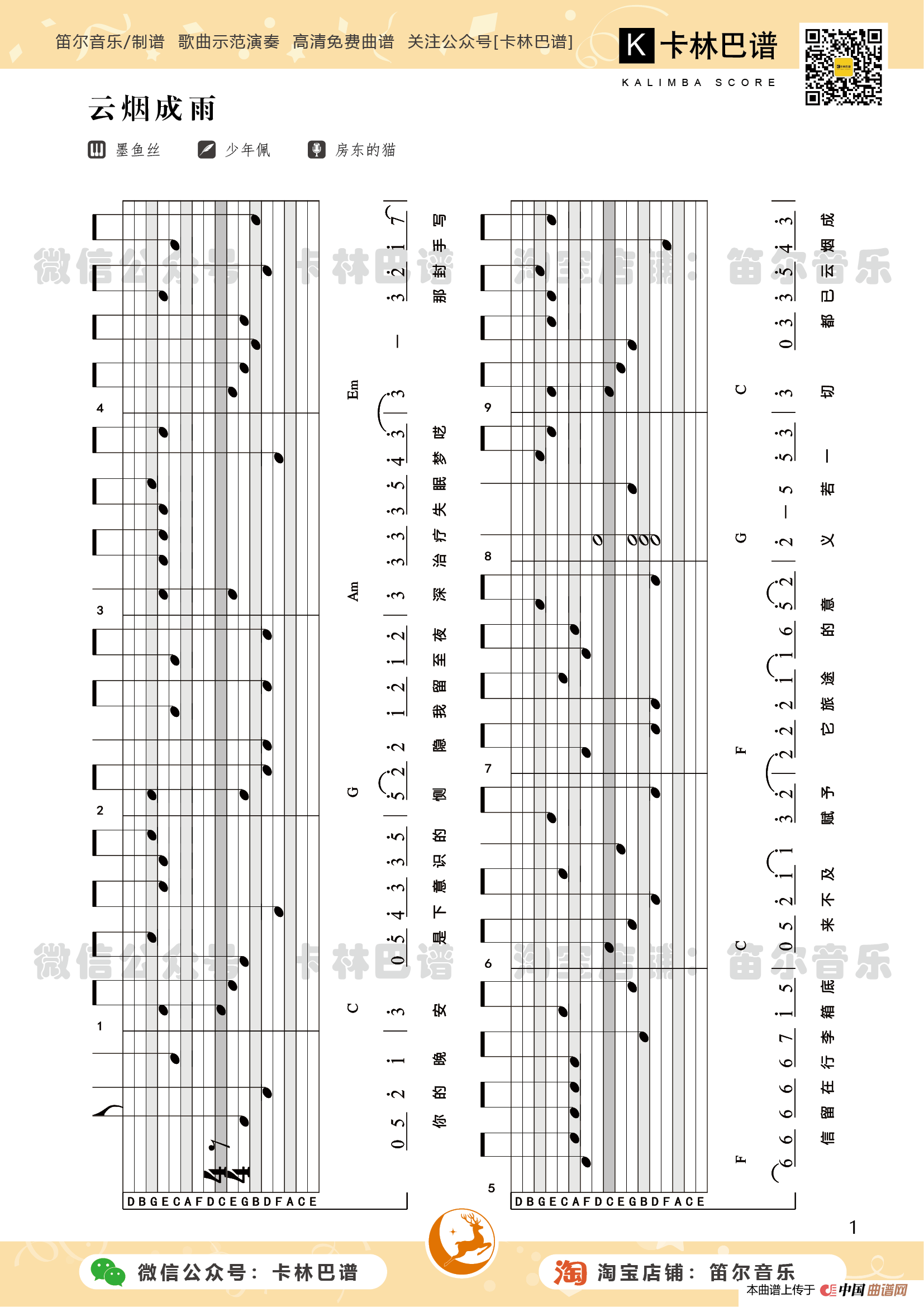 关于《卡林巴谱[云烟成雨]》曲谱的评论