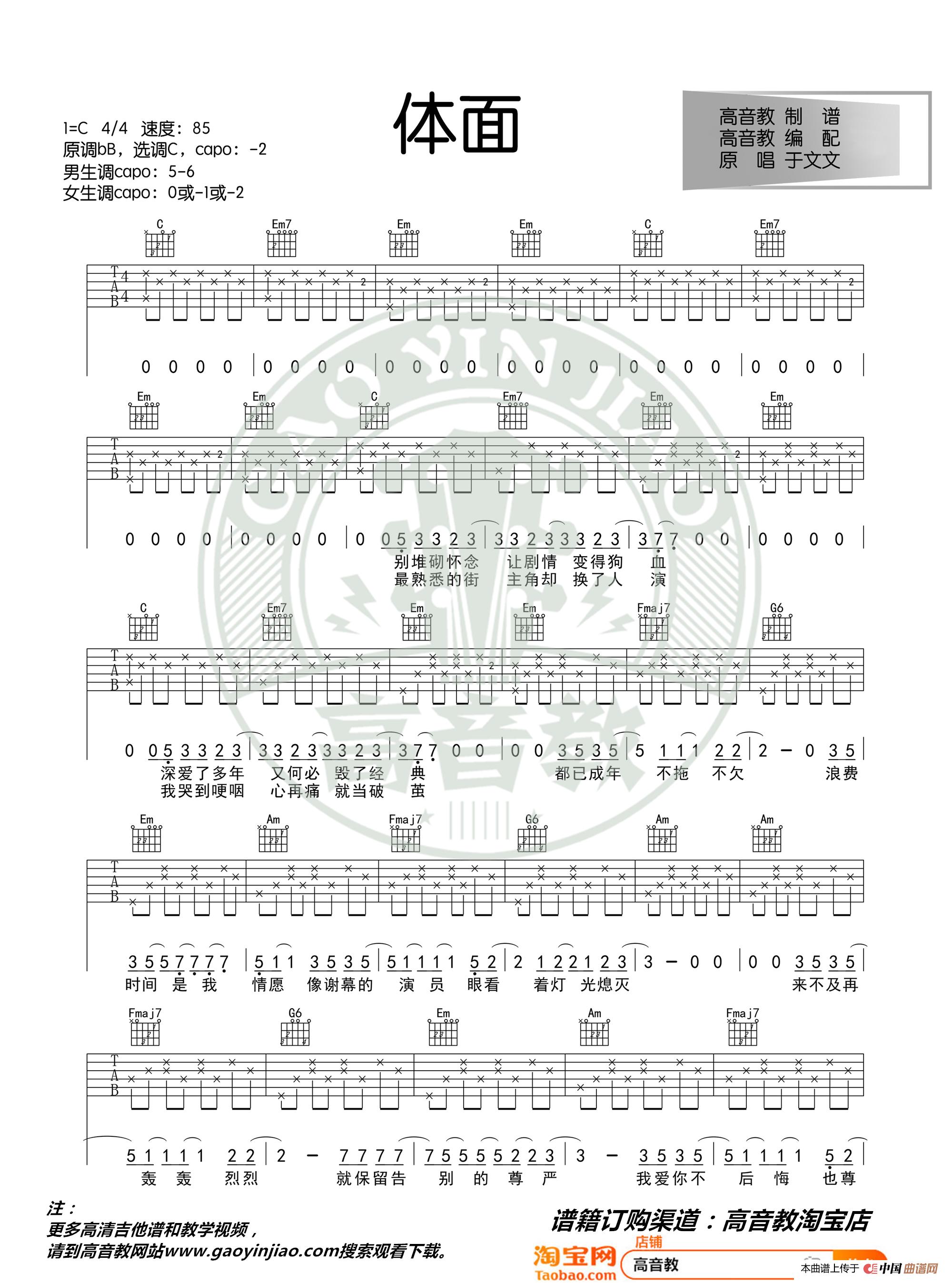 《体面》吉他谱C调入门版 于文文 高音教编配 猴哥吉他教学