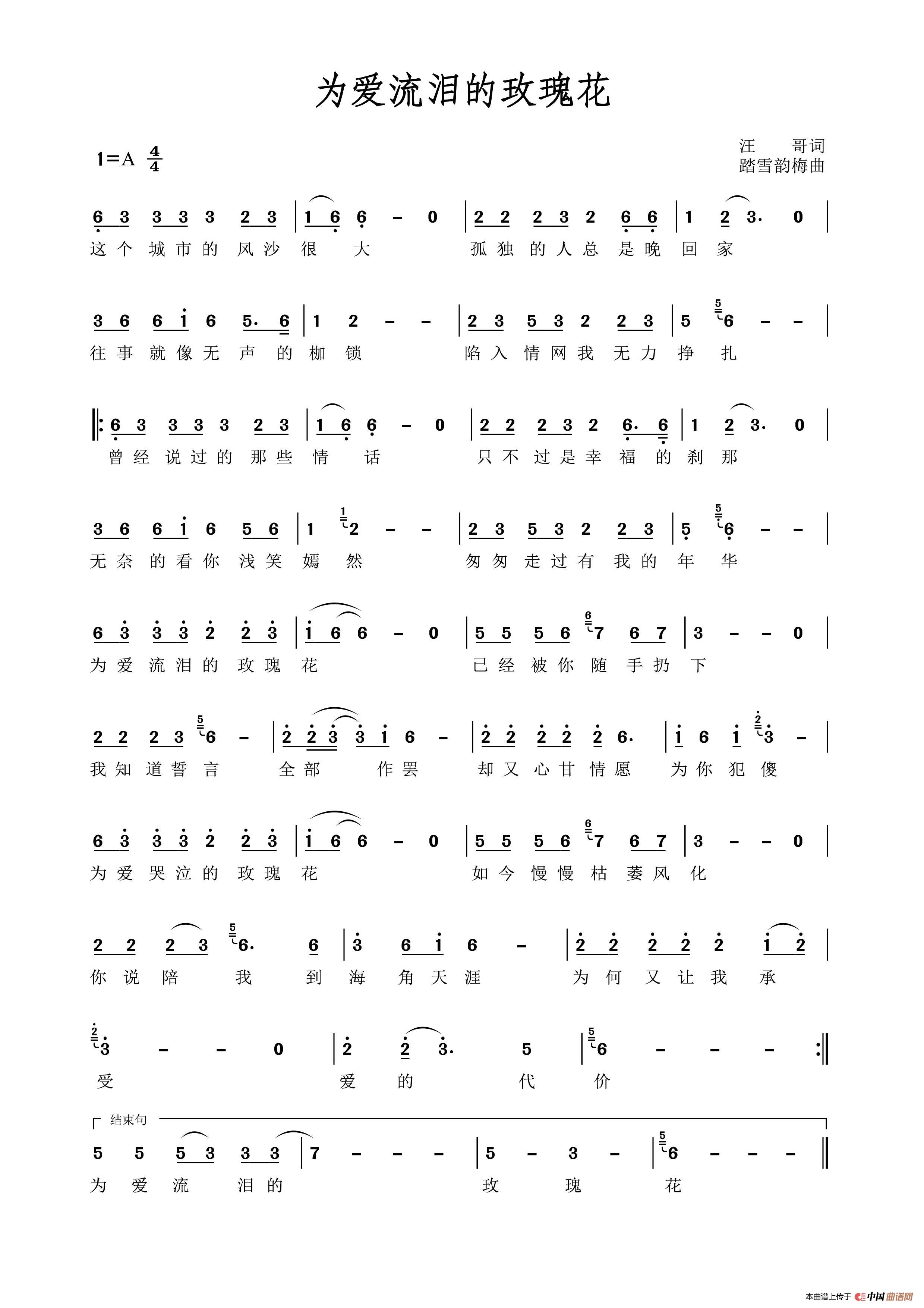 关于《为爱流泪的玫瑰花》曲谱的评论