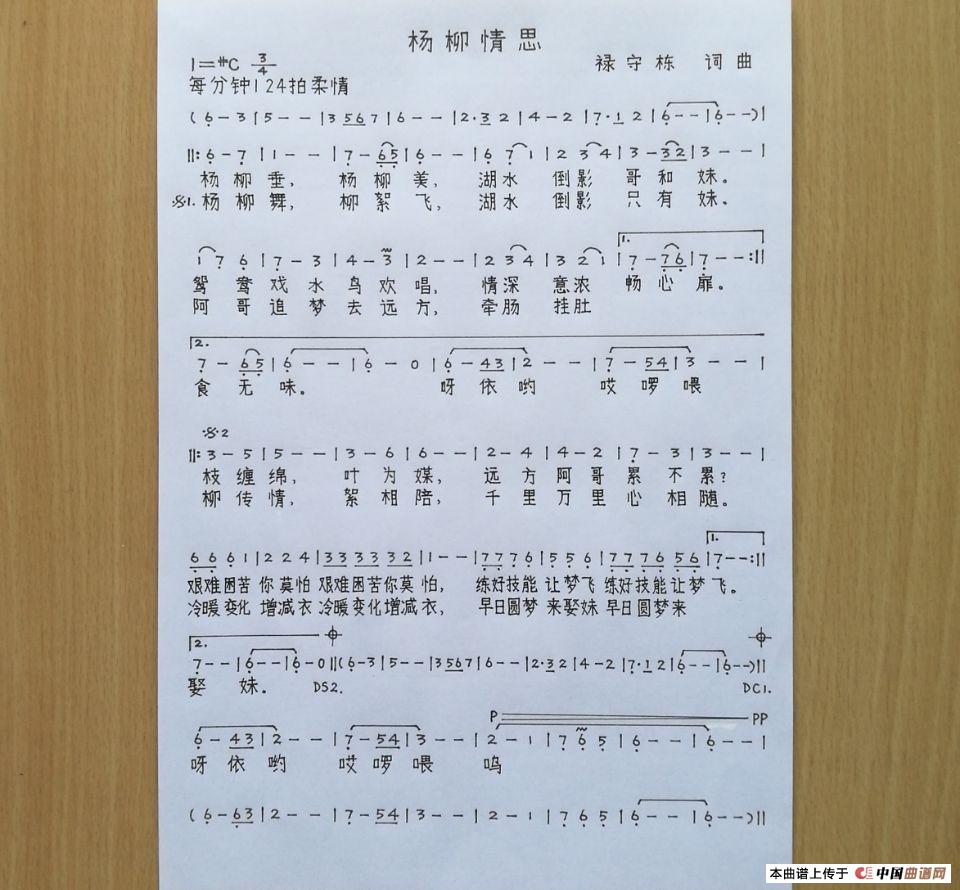 关于《杨柳情思》曲谱的评论