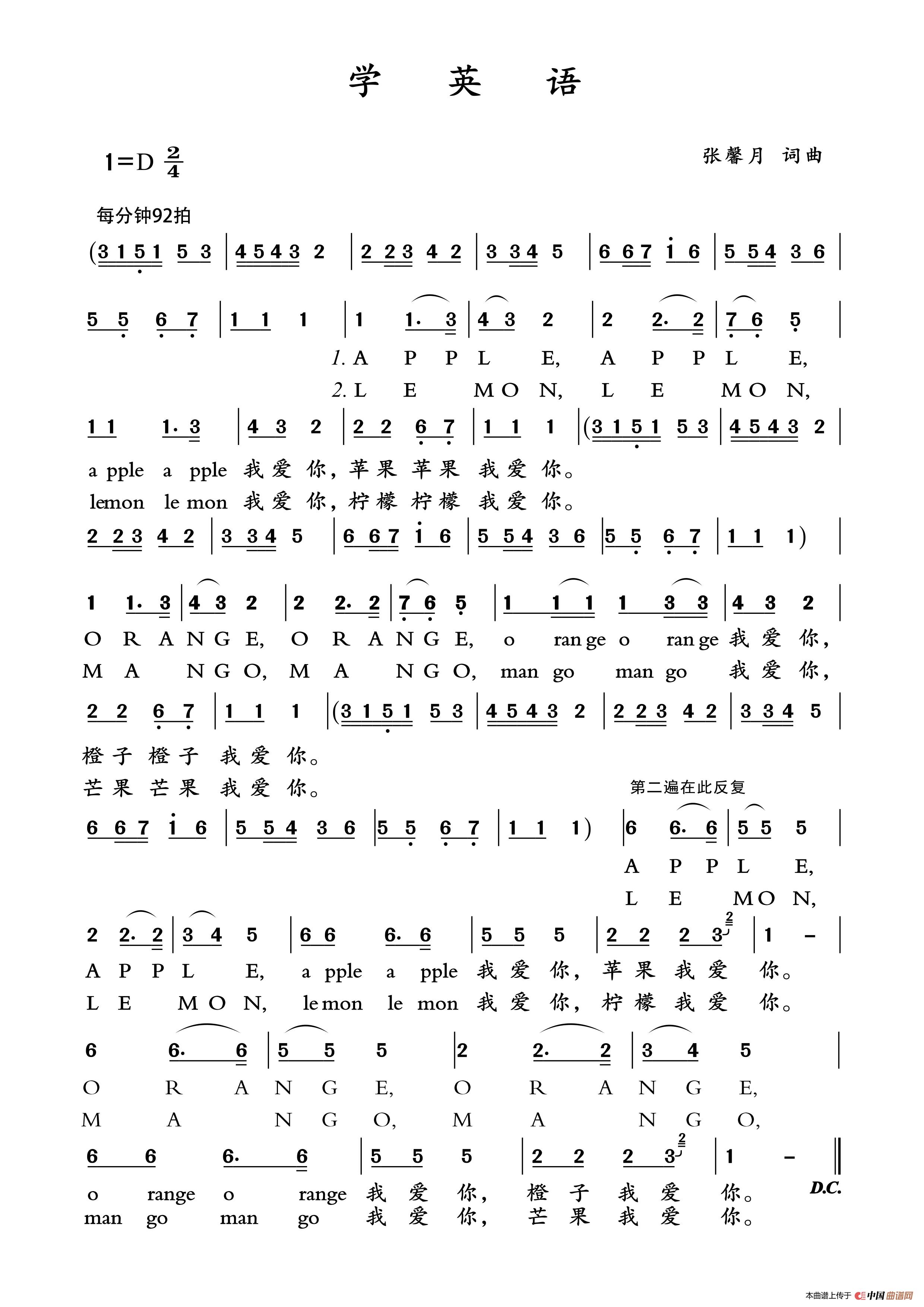 关于《学英语》曲谱的评论