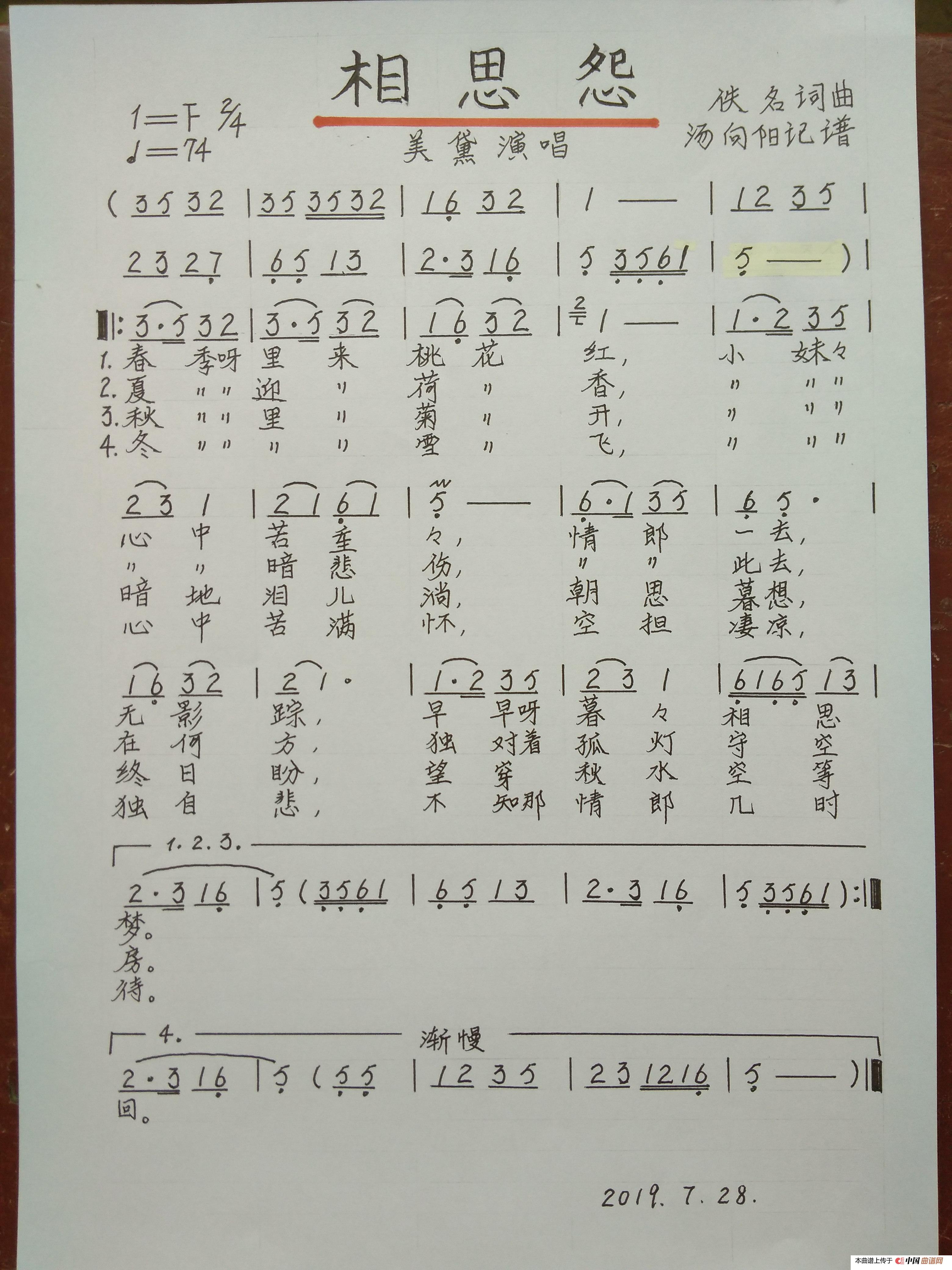 提示:在曲谱图片上单击右键,选择“图片另存为...”即可将曲谱保存到您的电脑中,打印时候可将图片插入到WORD中,调整合适大小打印即可。