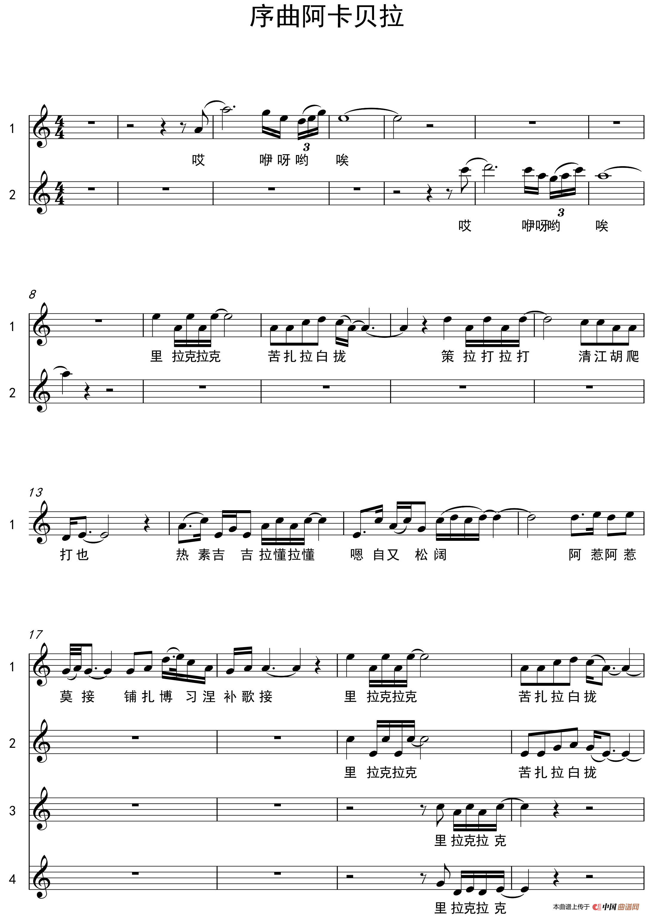 提示:在曲谱图片上单击右键,选择“图片另存为...”即可将曲谱保存到您的电脑中,打印时候可将图片插入到WORD中,调整合适大小打印即可。