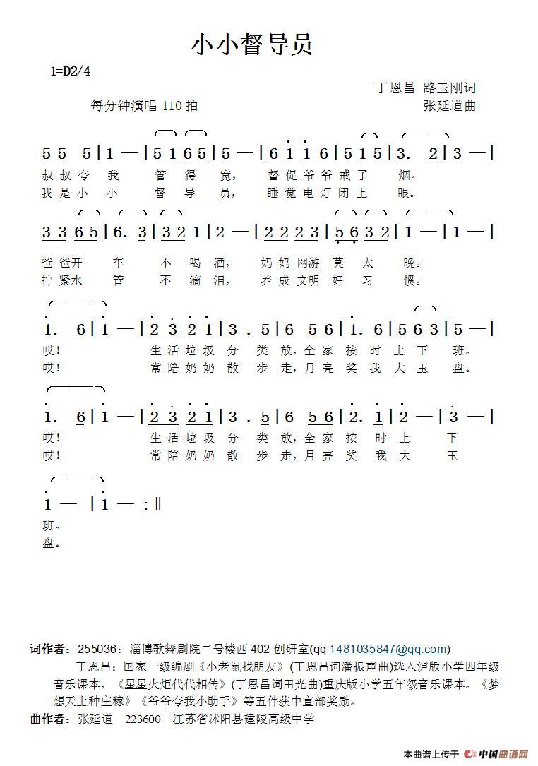 关于《小小督导员》曲谱的评论