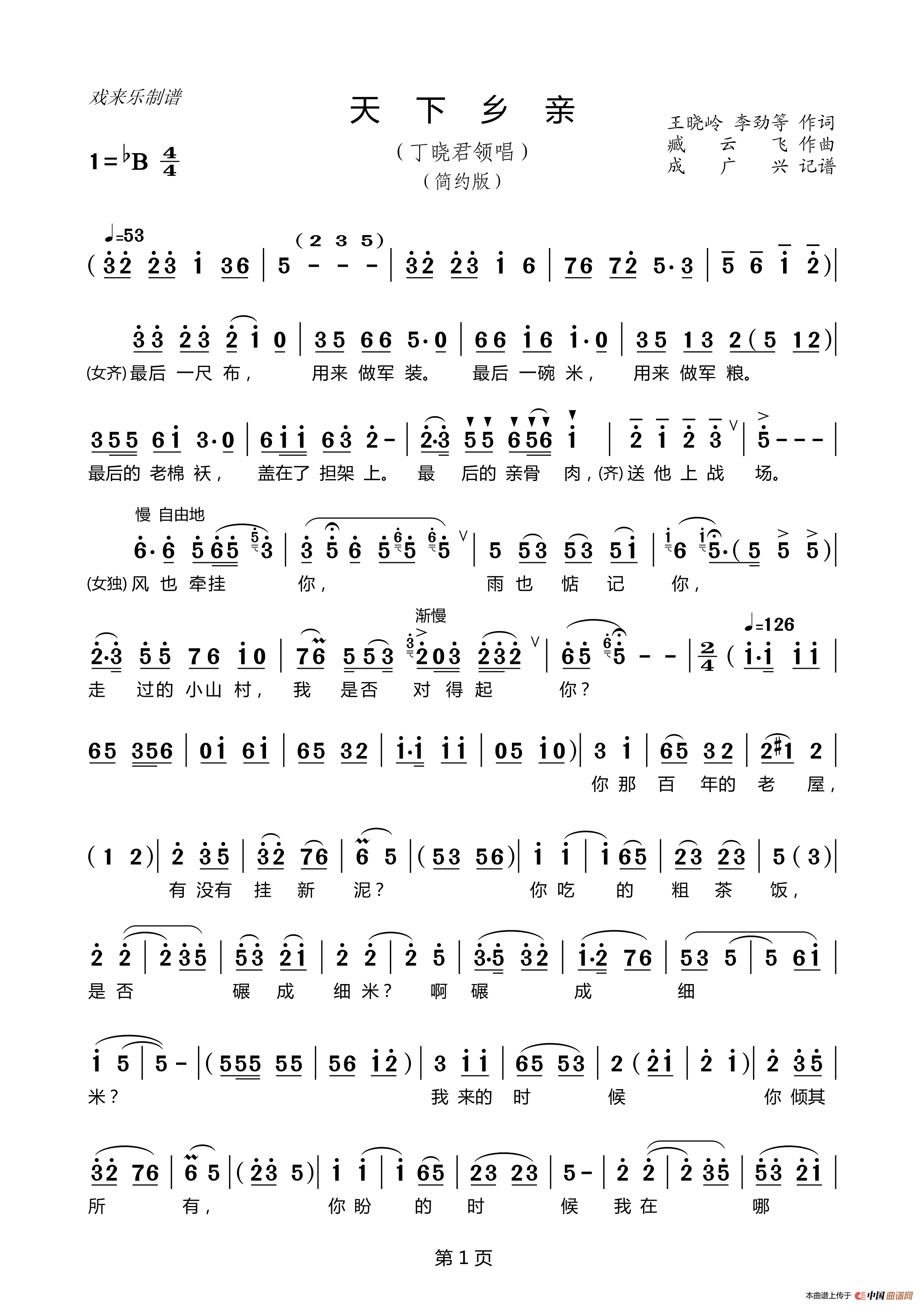 关于《天下乡亲》曲谱的评论