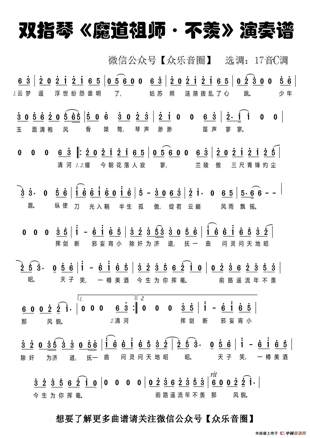 魔道祖师·不羡(拇指琴卡林巴琴单音简谱)