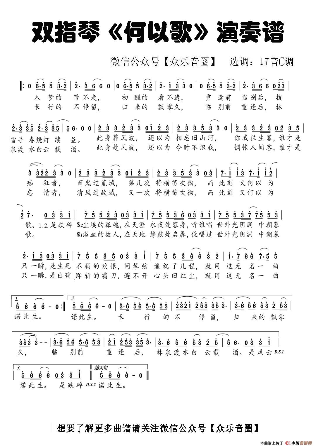 魔道祖师·何以歌(拇指琴卡林巴琴单音简谱)