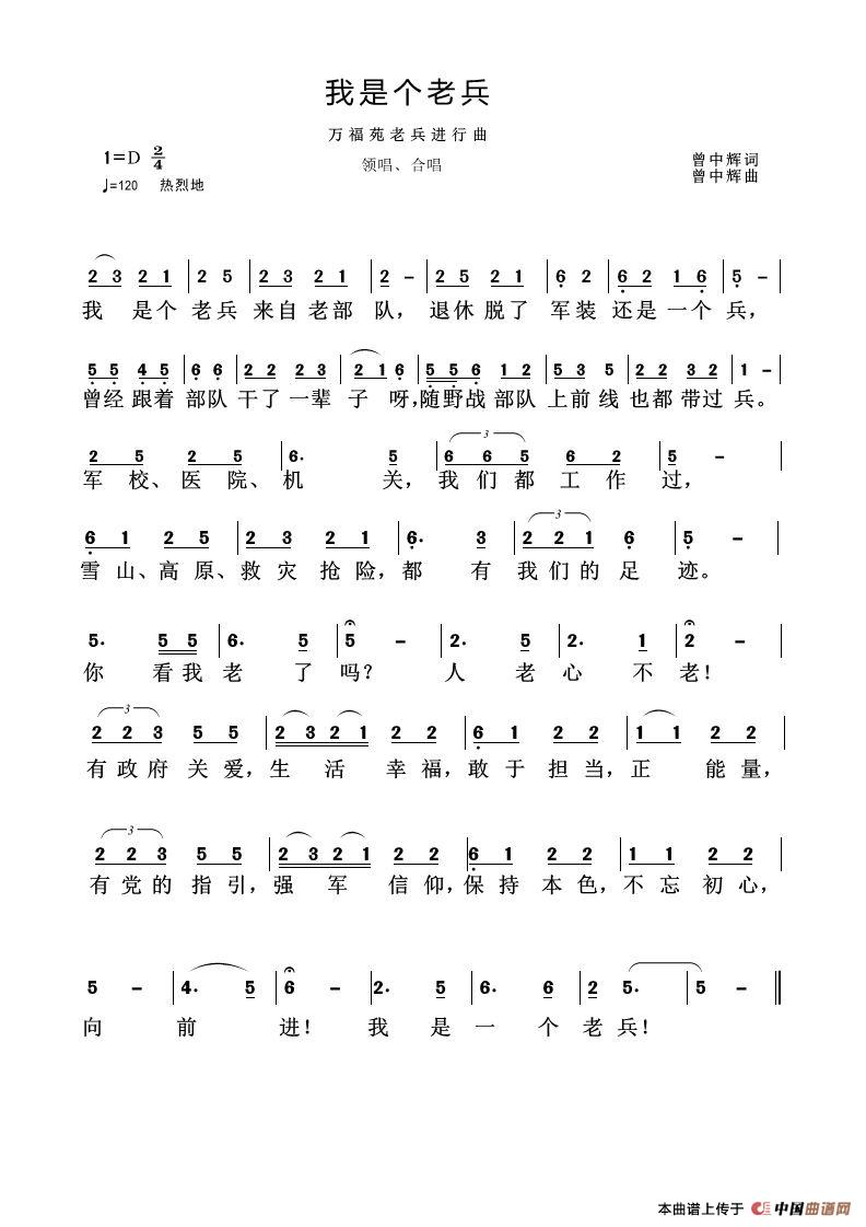 关于《我是个老兵》曲谱的评论