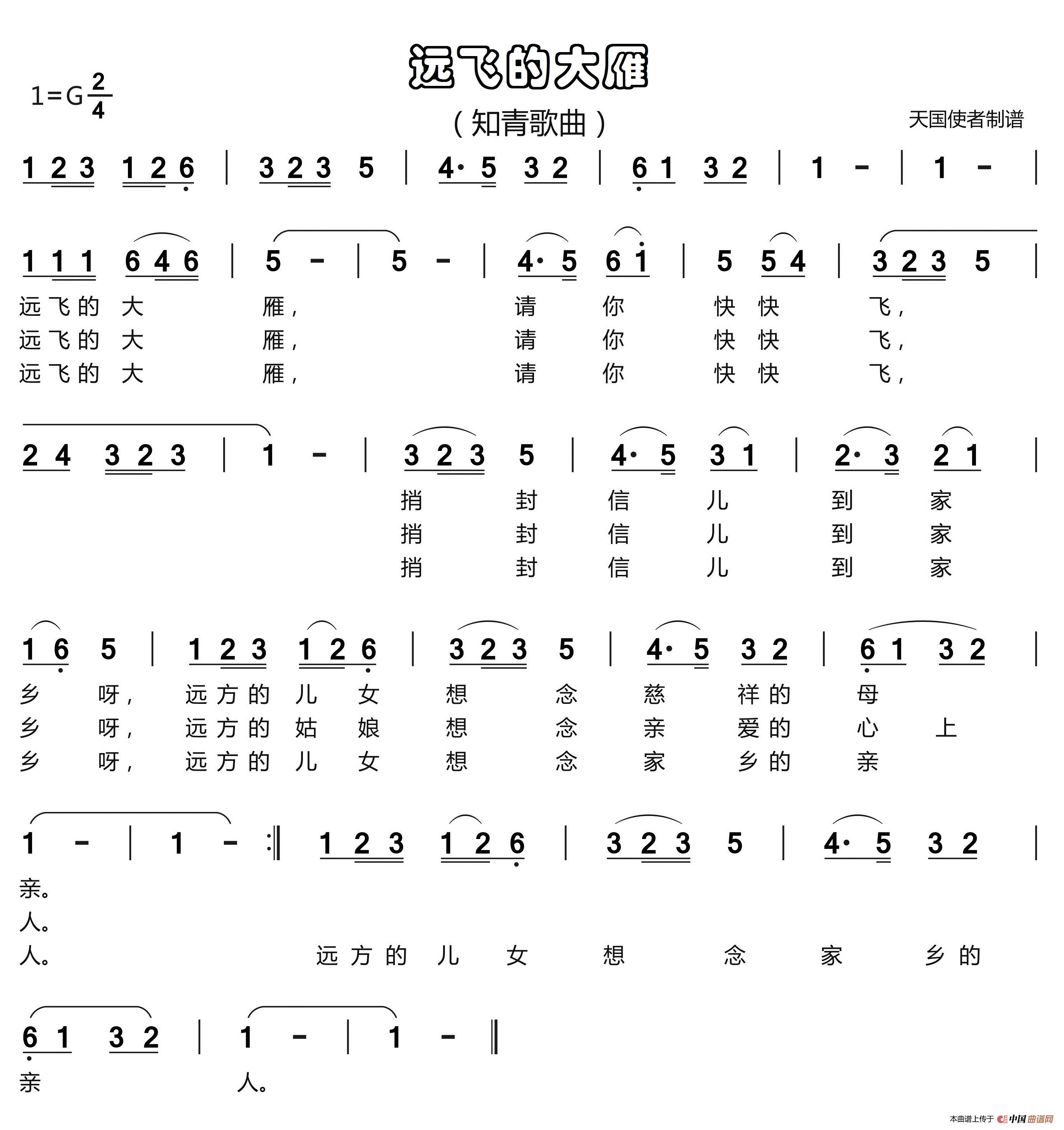 关于《远飞的大雁》曲谱的评论