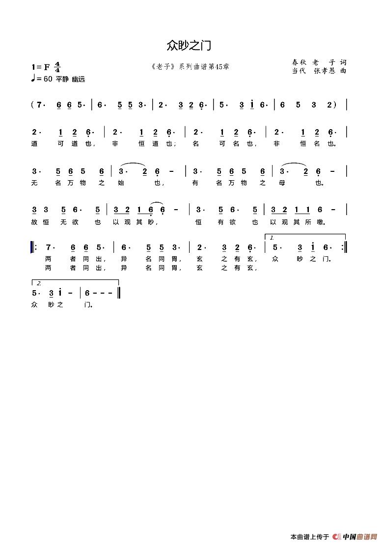 作词:春秋 老子 作曲:当代 孝愚 来源:谱友zhy7jj上传 上传:zhy7jj