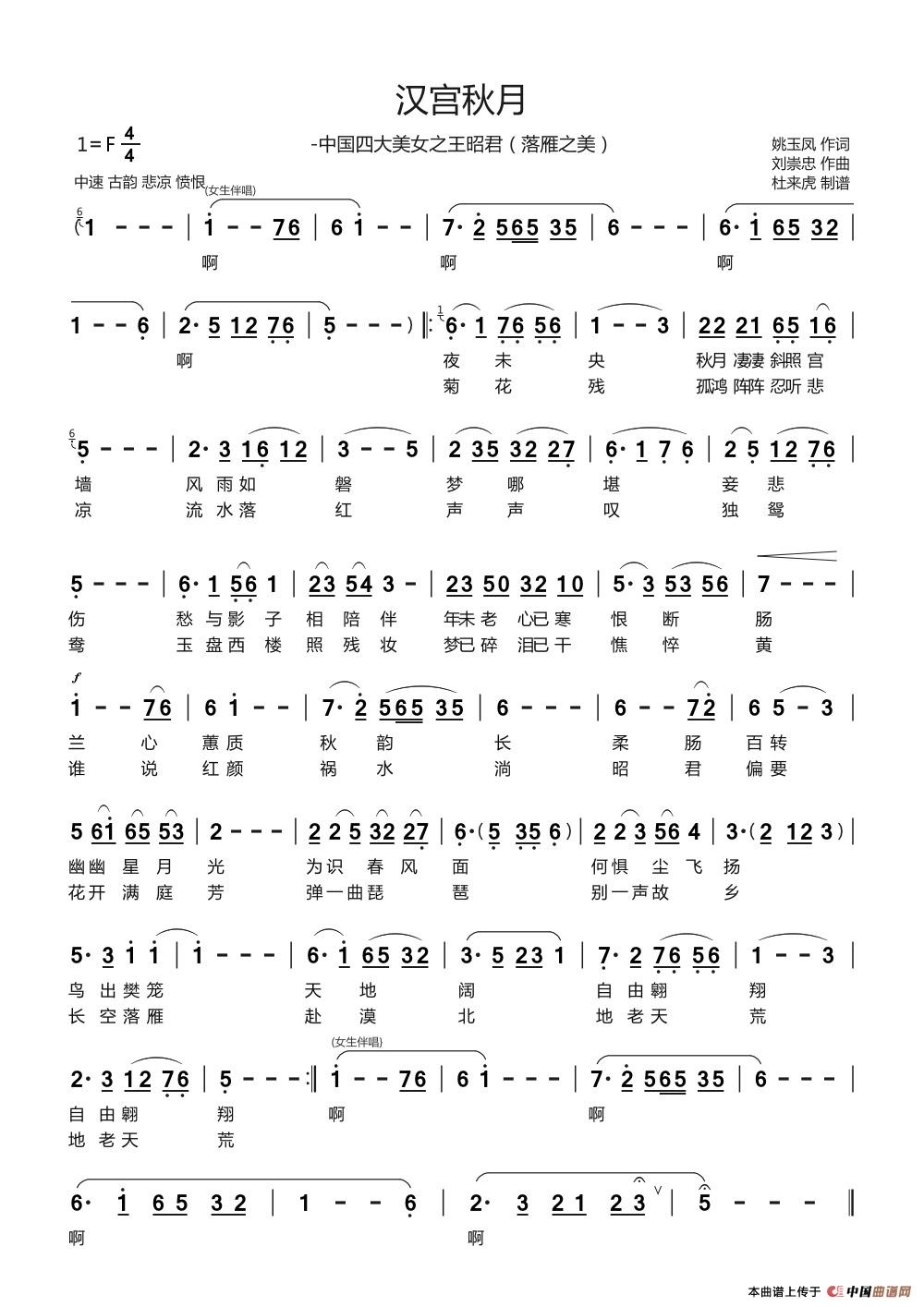 关于《汉宫秋月【姚玉凤刘崇忠版】》曲谱的评论