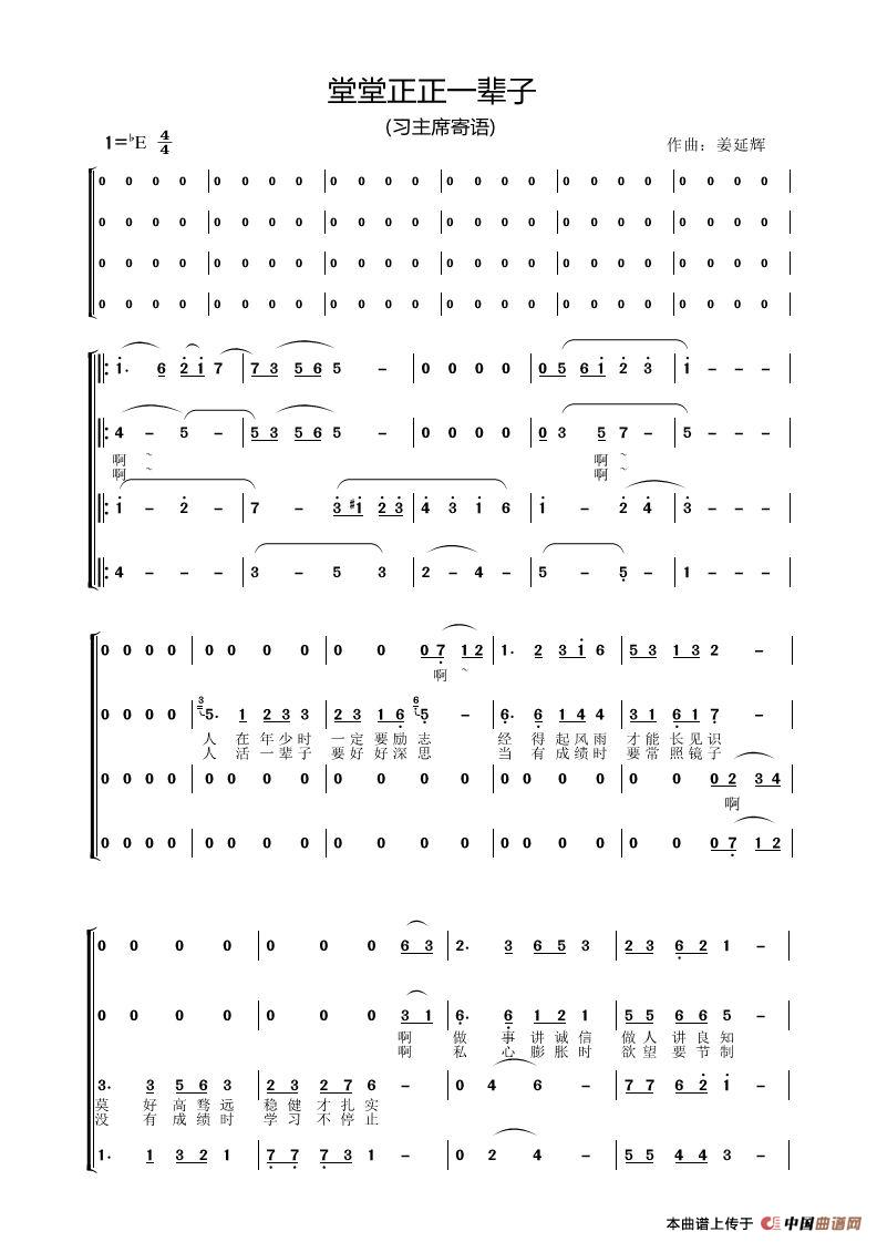 堂堂正正一辈子 习近平姜延辉词 姜延辉曲 陶红 国交合唱团 人在年少时一定要立志 经得起风雨才能涨见识 莫好高骛远稳健才扎实 做事讲诚信做人讲良知 你有能力是决心做大事