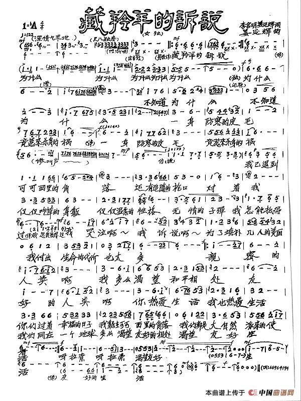 关于《藏羚羊的诉说》曲谱的评论