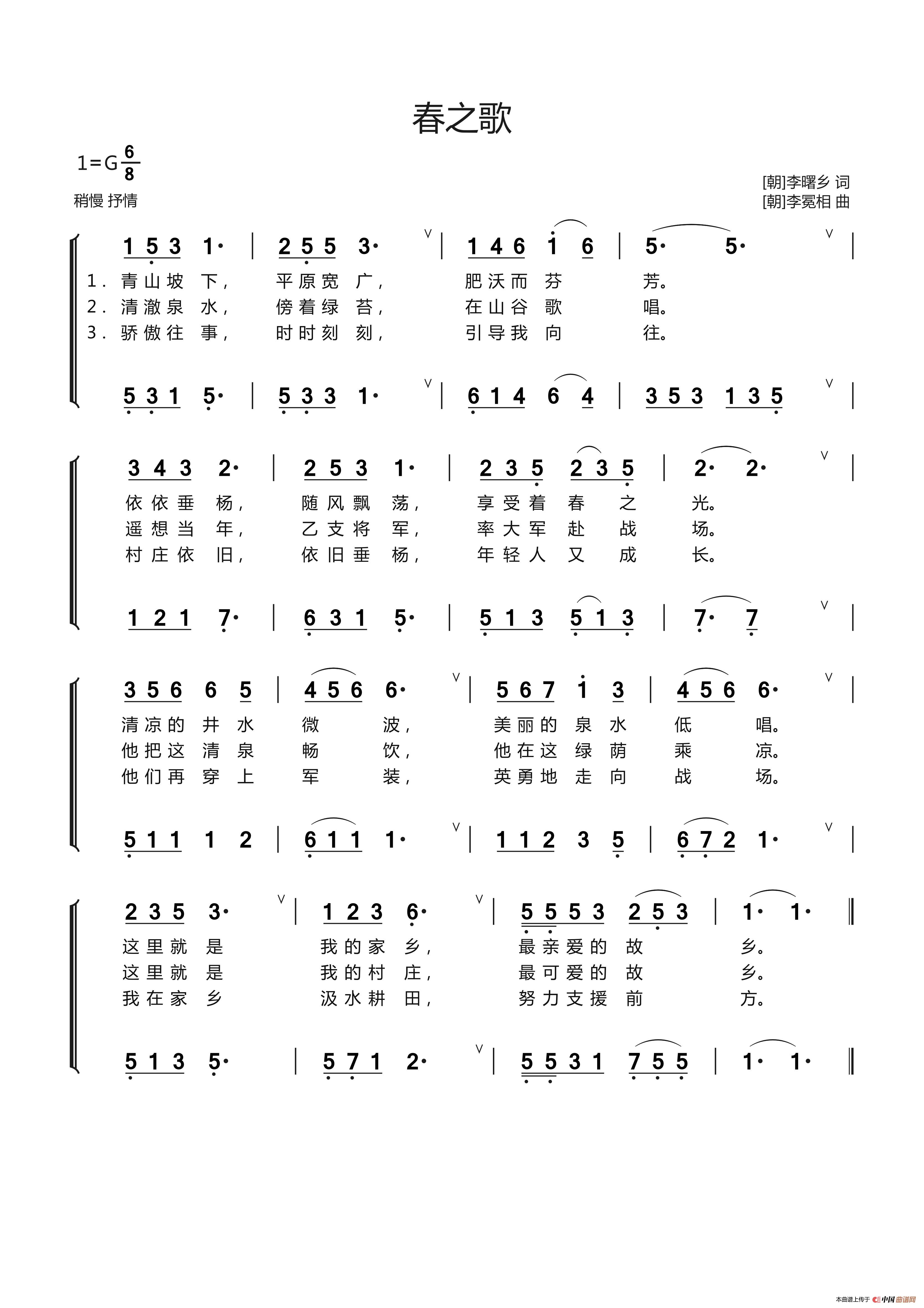 作词:李曙乡   作曲:李冕相   来源:谱友万里雪飘上传   上传:万里雪飘   日期:2019-08-13   浏览次数:
