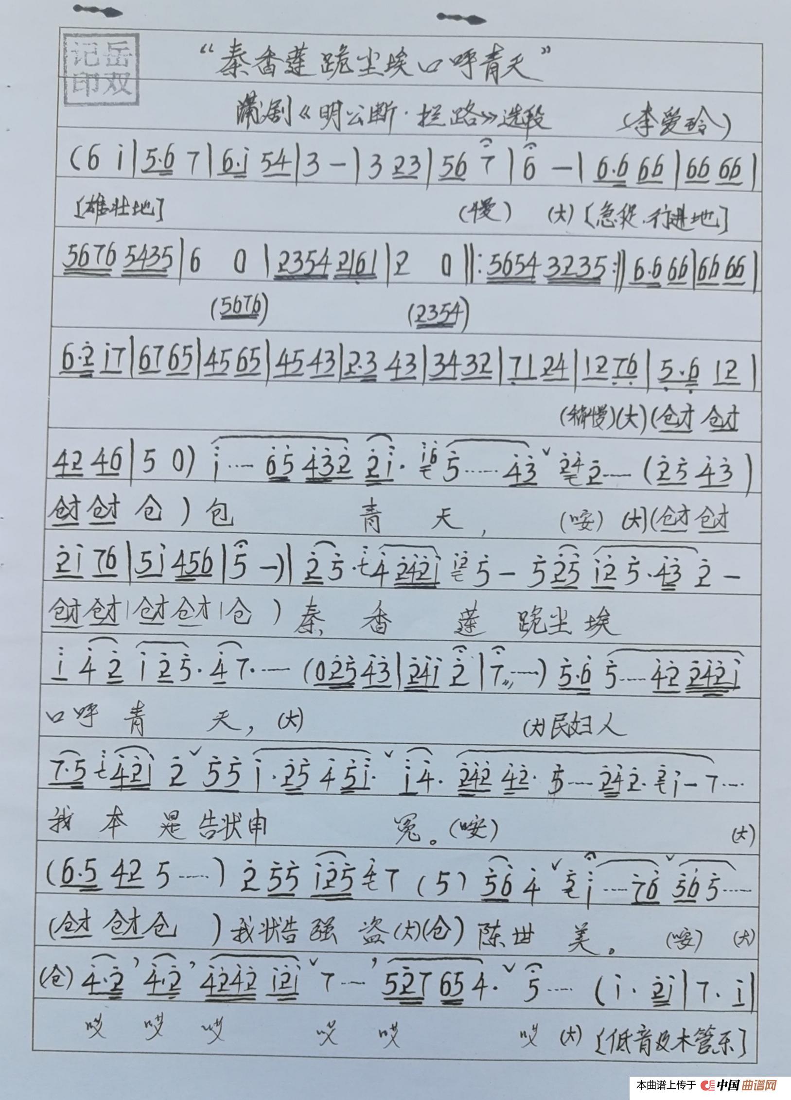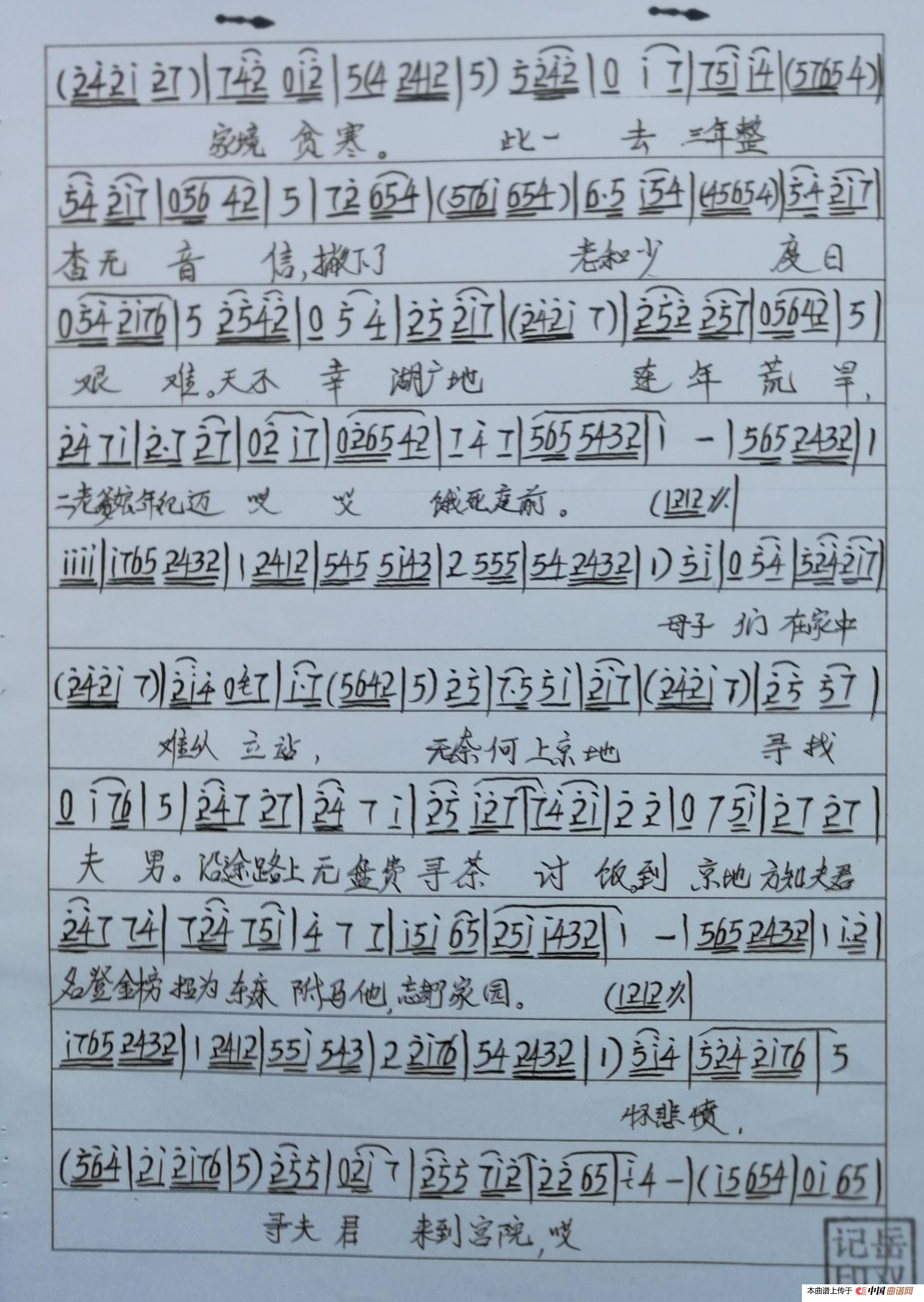蒲剧拦路曲谱