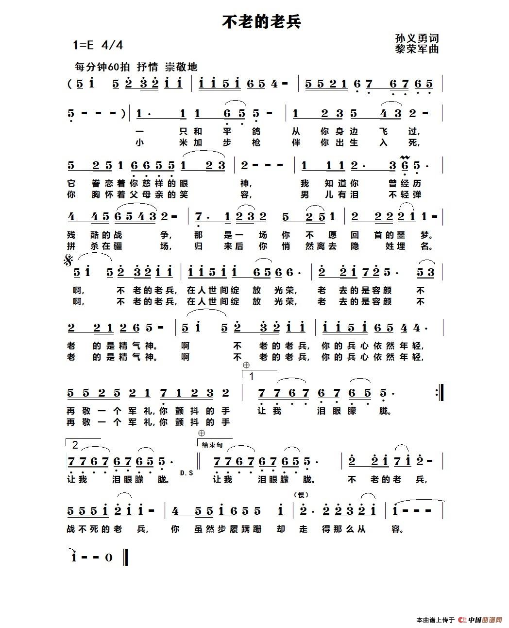 关于《不老的老兵》曲谱的评论