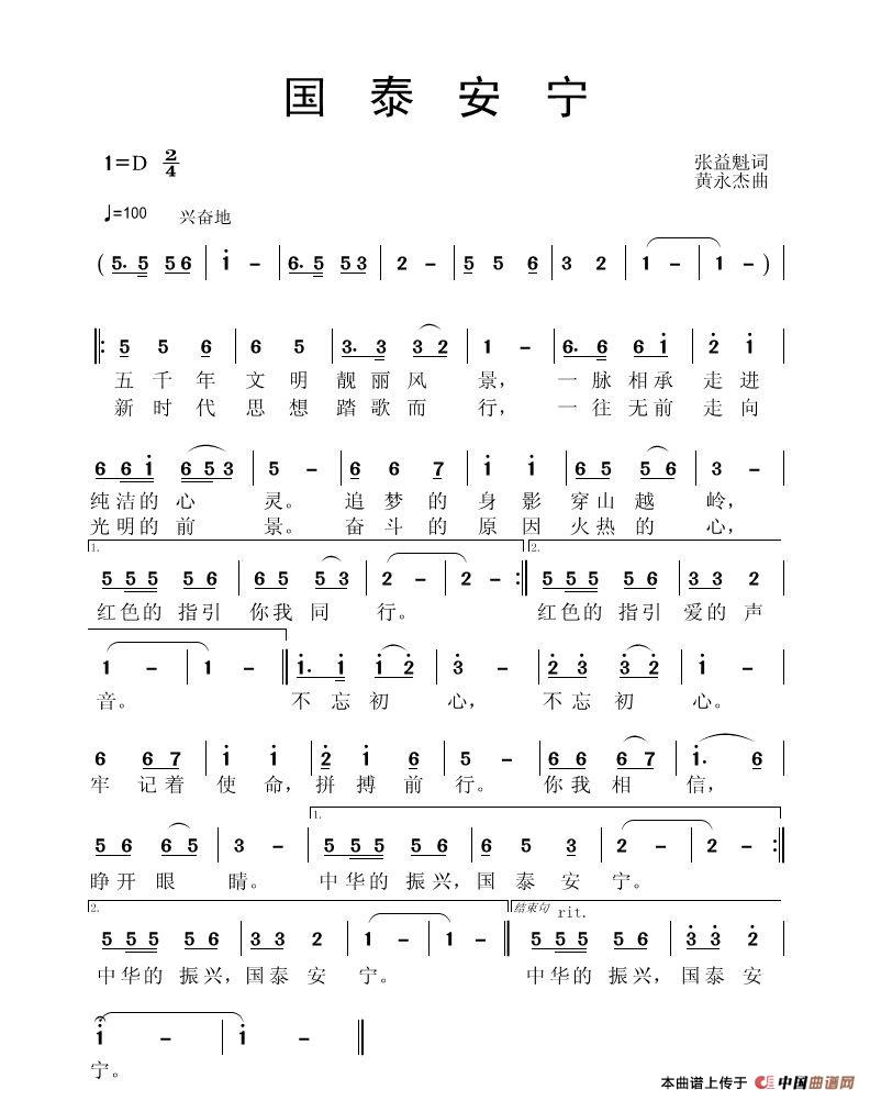 《国泰安宁》文本歌词