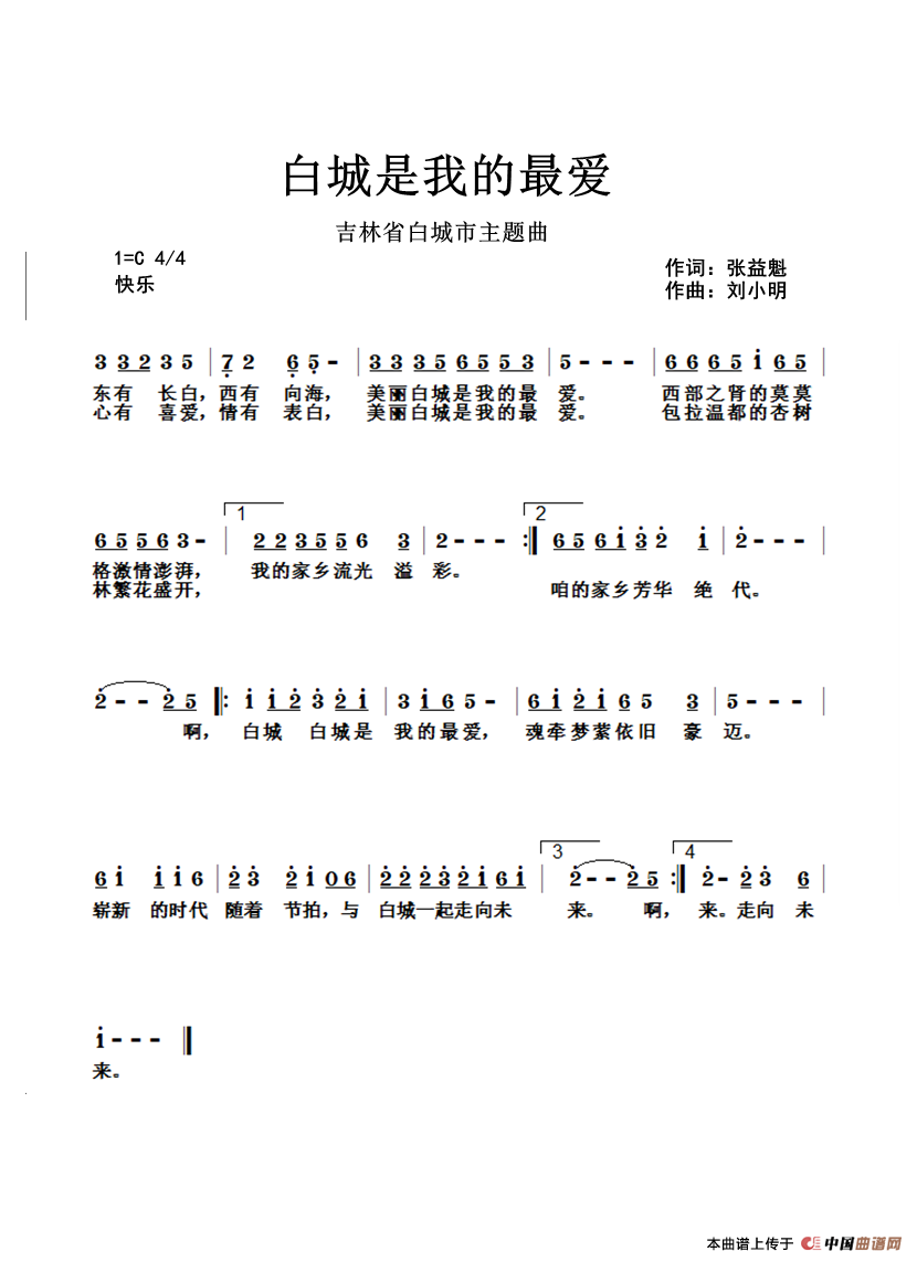 谨以此歌,专为白城市撰写的主题曲。另外,所有情歌长期版权合作,可定制,所有歌曲欢迎演唱小样,有署名,百度可以署名认证,广交全国词曲和歌手及演唱爱好者等好友。