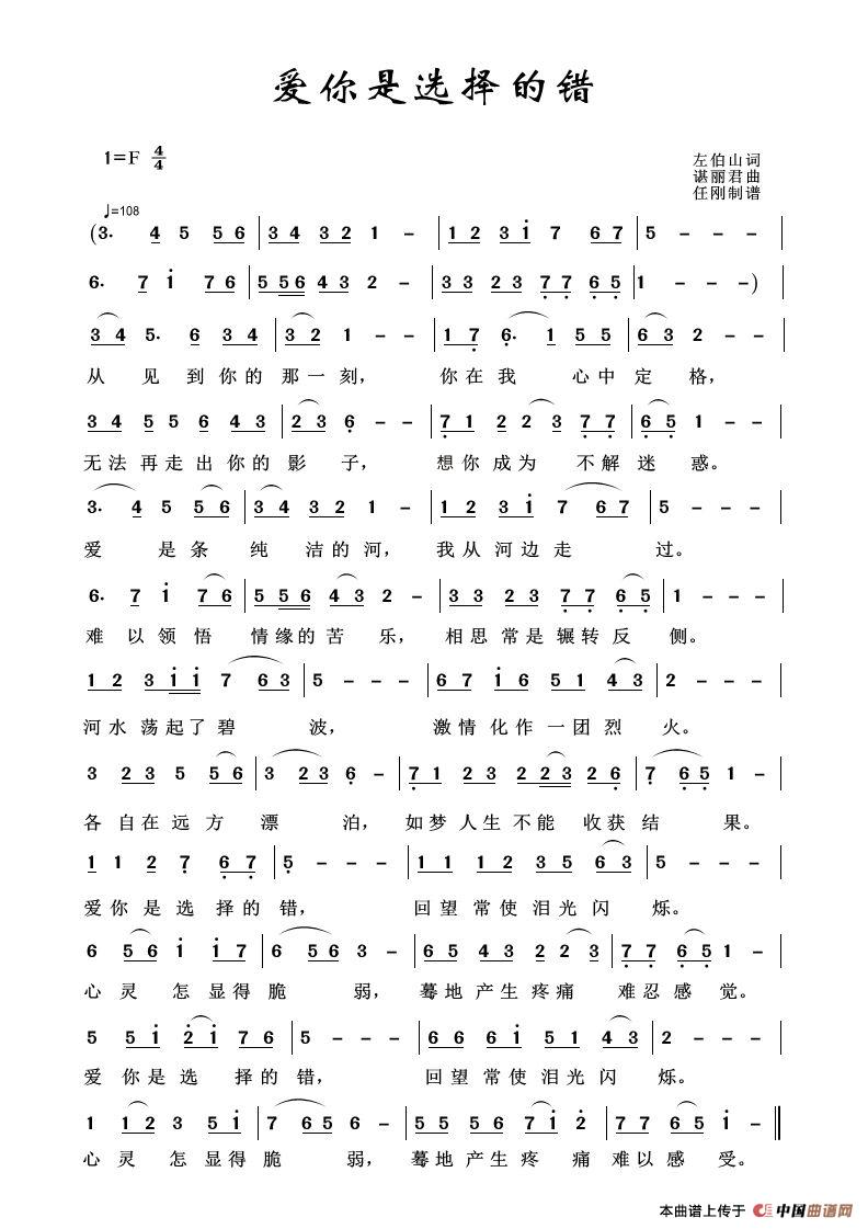 关于《爱你是选择的错》曲谱的评论