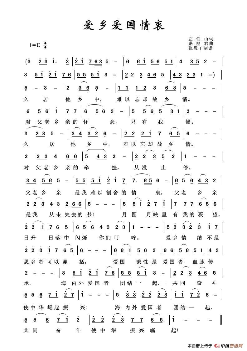 关于《爱乡爱国情衷》曲谱的评论