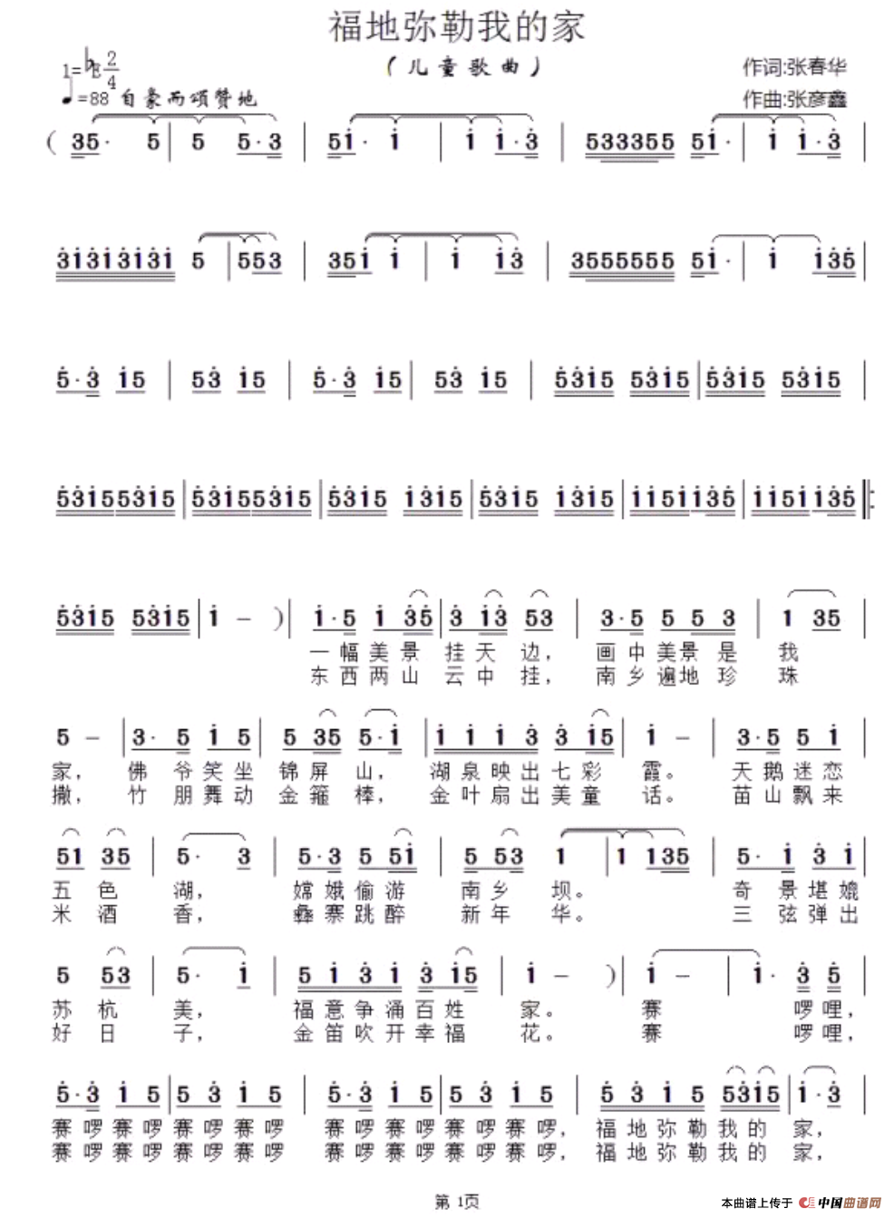 提示:在曲谱图片上单击右键,选择“图片另存为...”即可将曲谱保存到您的电脑中,打印时候可将图片插入到WORD中,调整合适大小打印即可。