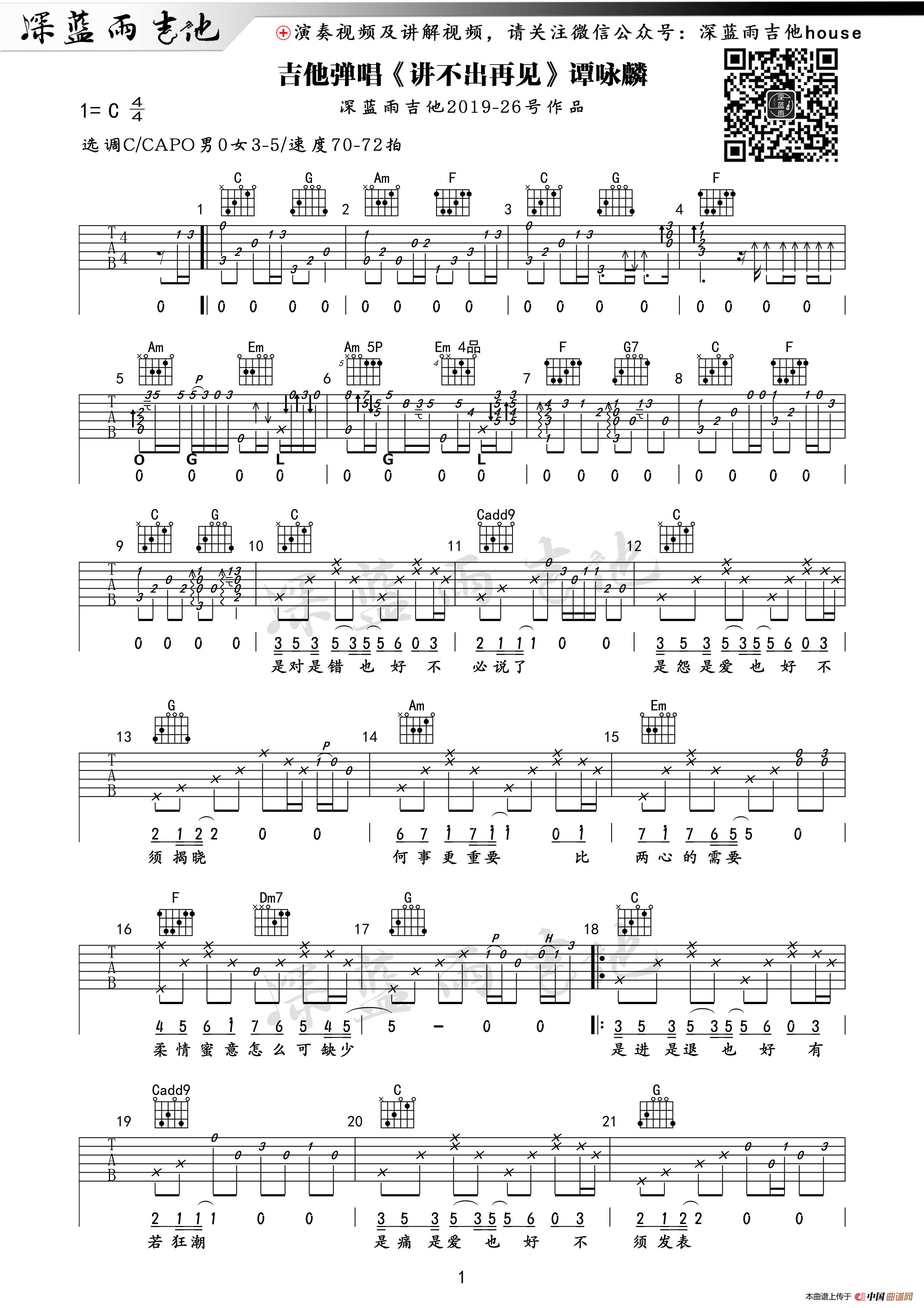更多曲谱内容在公众号: 深蓝雨吉他house