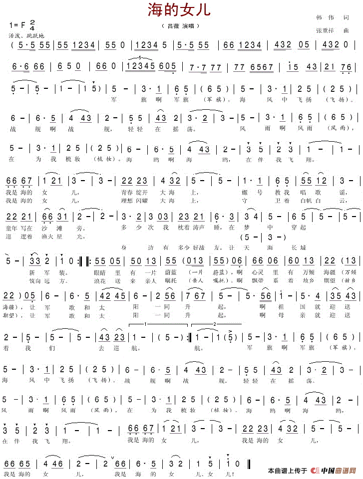 作词:韩伟   作曲:张重祥   演唱(奏):吕薇   来源:转谱其他网站自己修改版本   上传:刘云云   日期:2019-08-26   浏览次数: