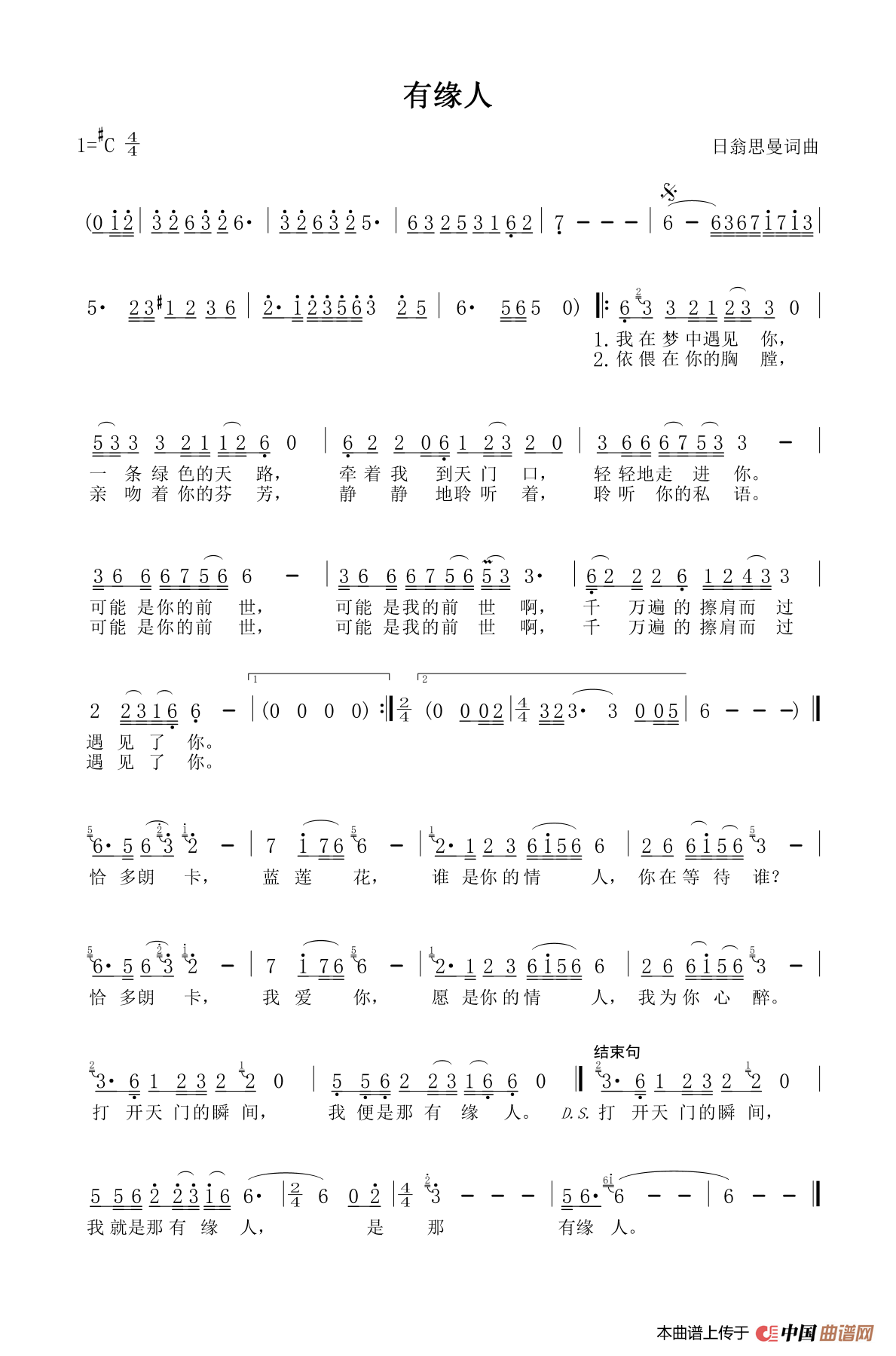 关于《有缘人》曲谱的评论