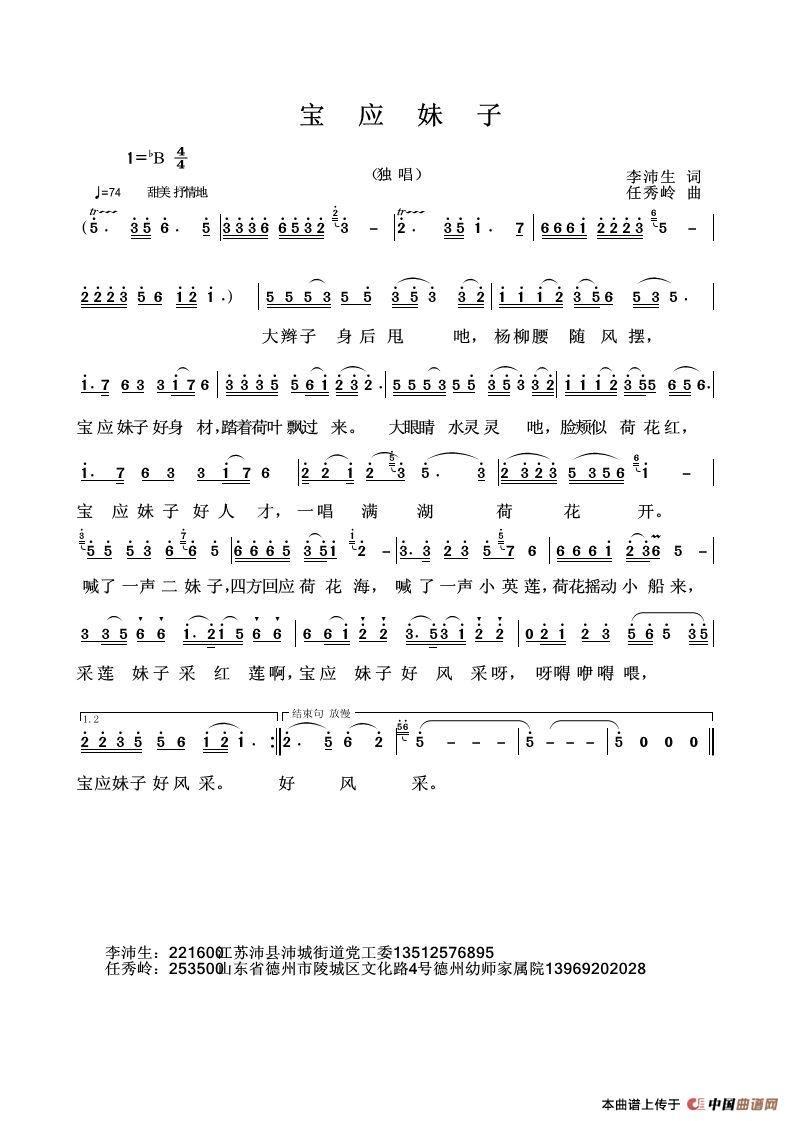 关于《宝应妹子》曲谱的评论