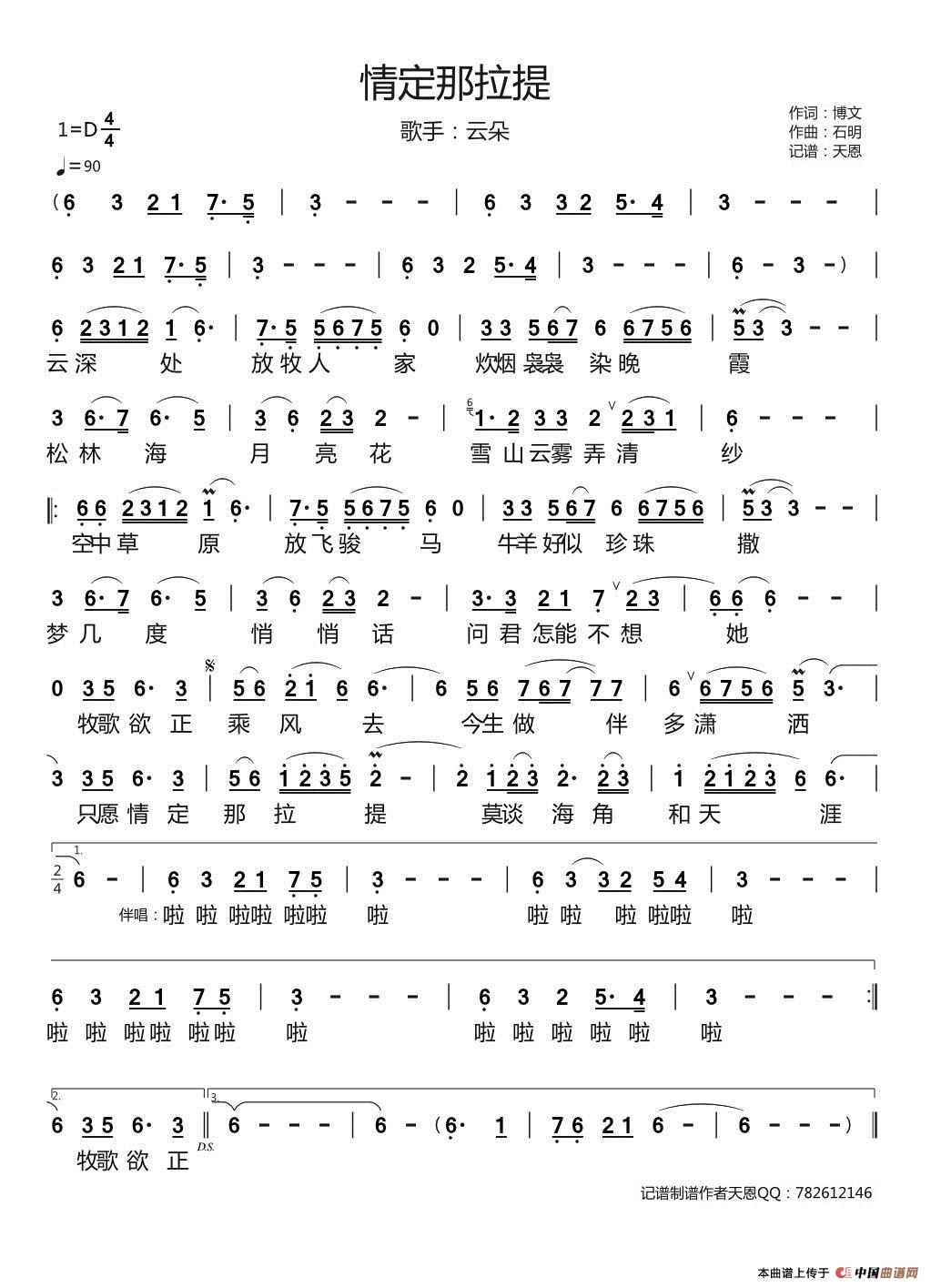 关于《情定那拉提》曲谱的评论