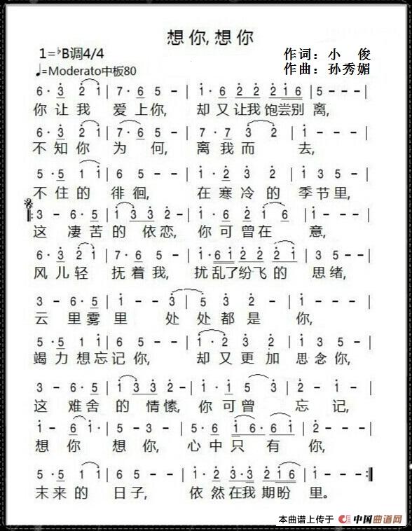 关于《想你想你》曲谱的评论