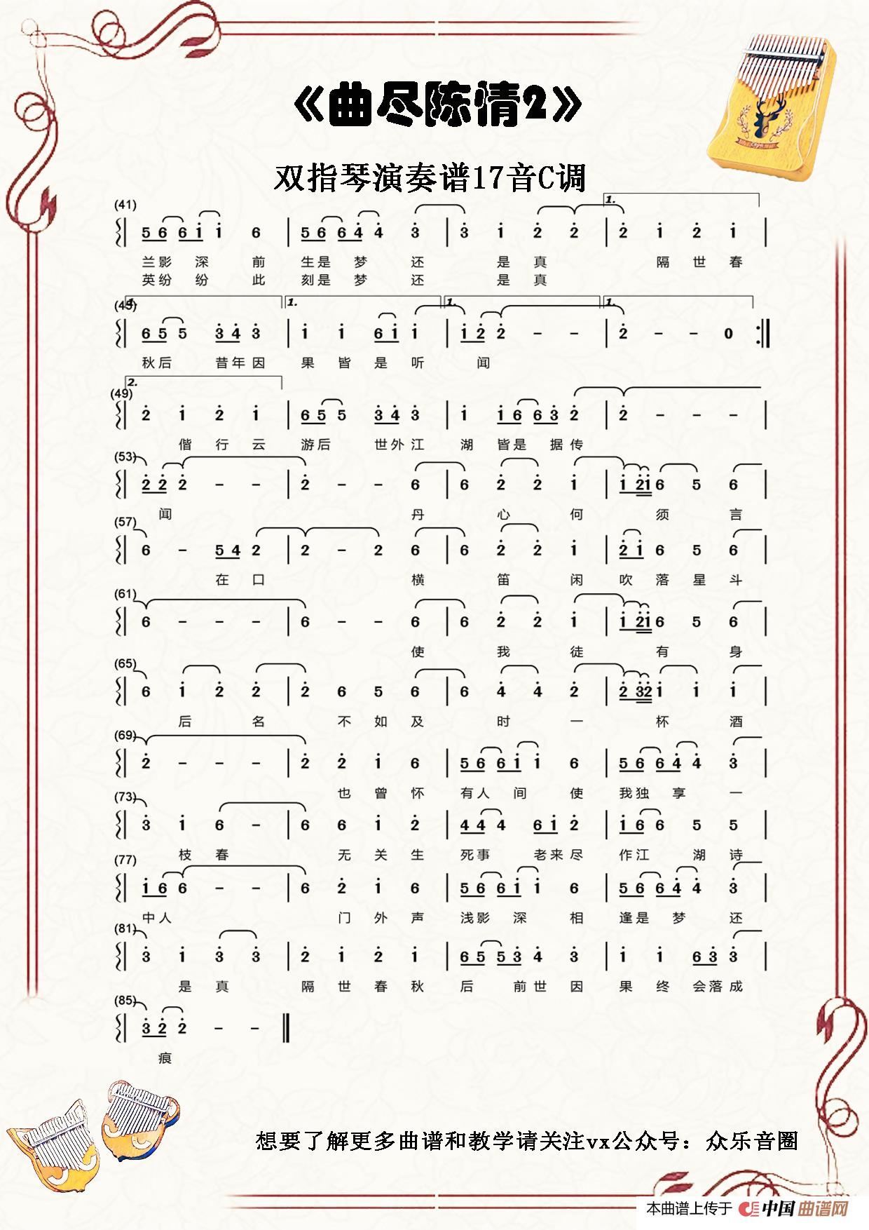 陈情令·曲尽陈情(拇指琴卡林巴琴单音简谱)