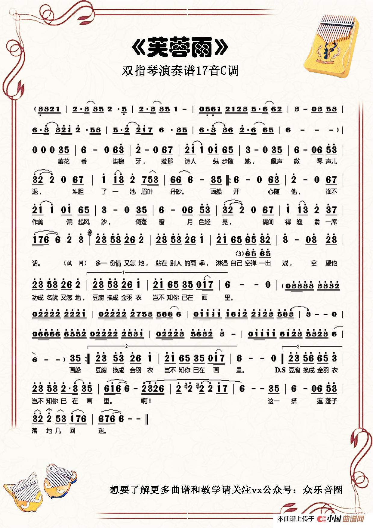 芙蓉雨(拇指琴卡林巴琴单音简谱)