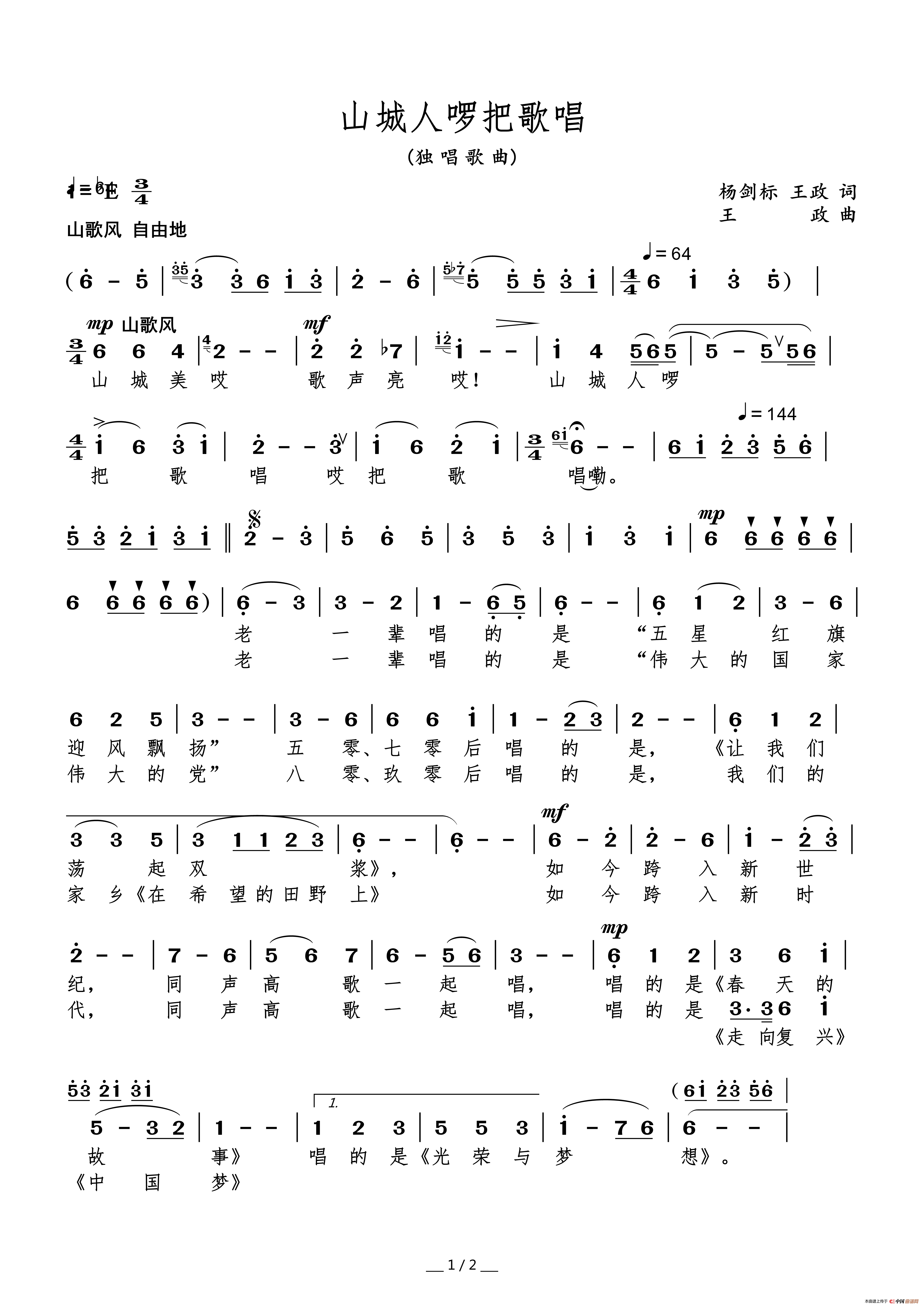 提示:在曲谱图片上单击右键,选择“图片另存为...”即可将曲谱保存到您的电脑中,打印时候可将图片插入到WORD中,调整合适大小打印即可。