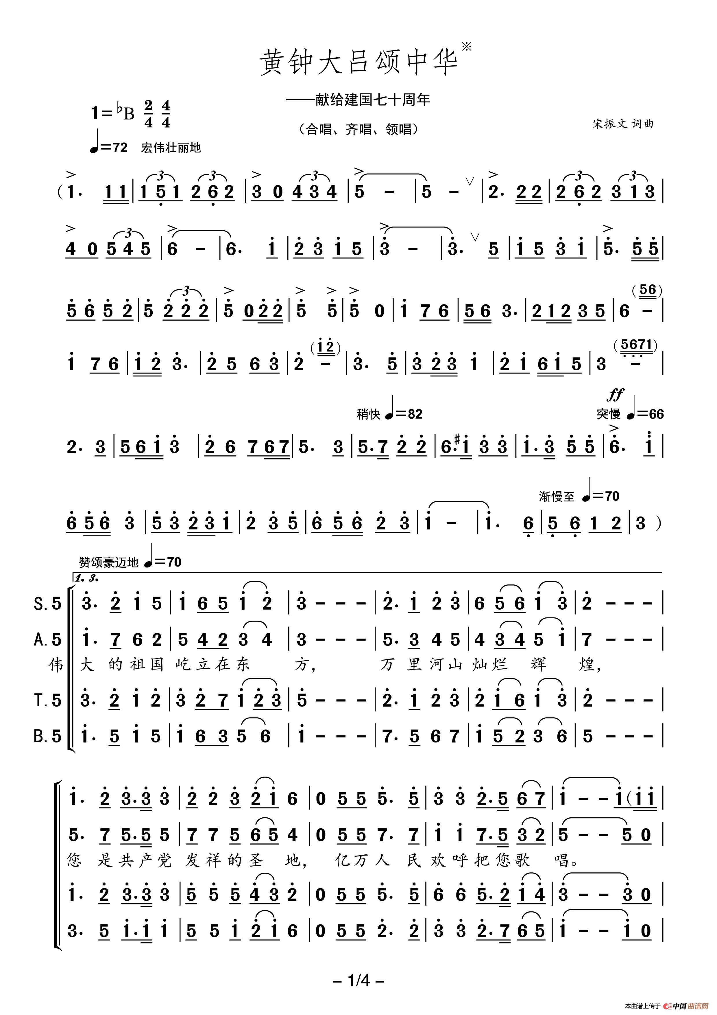 关于《黄钟大吕颂中华》曲谱的评论