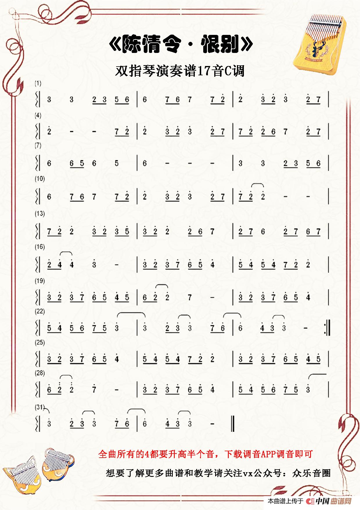 陈情令·恨别(拇指琴卡林巴琴单音简谱)