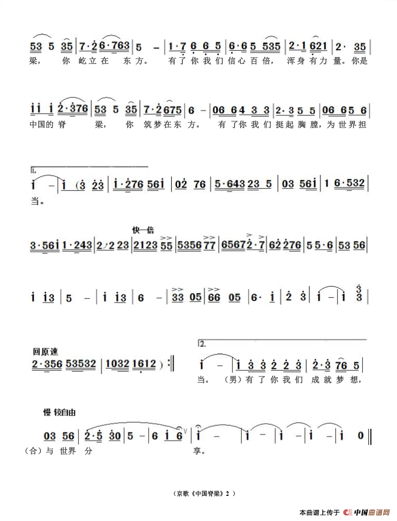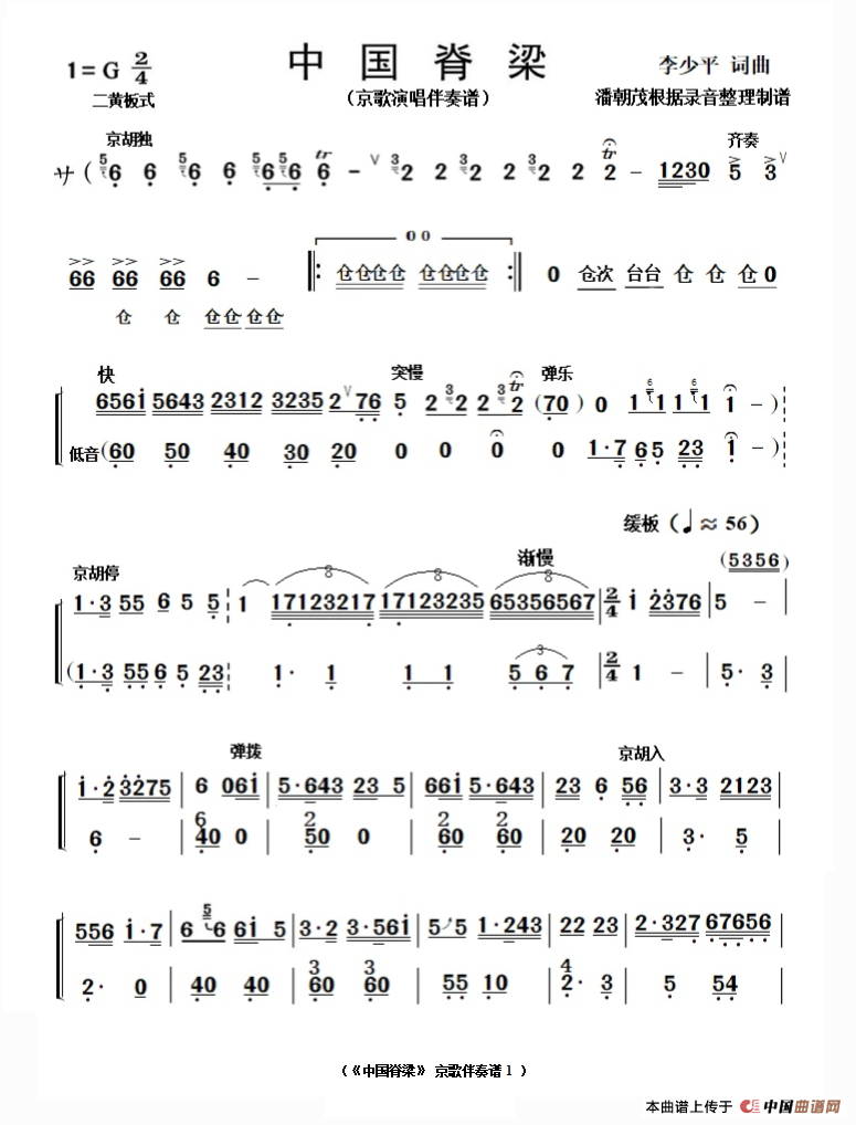 关于《京歌《中国脊梁》 伴奏谱》曲谱的评论