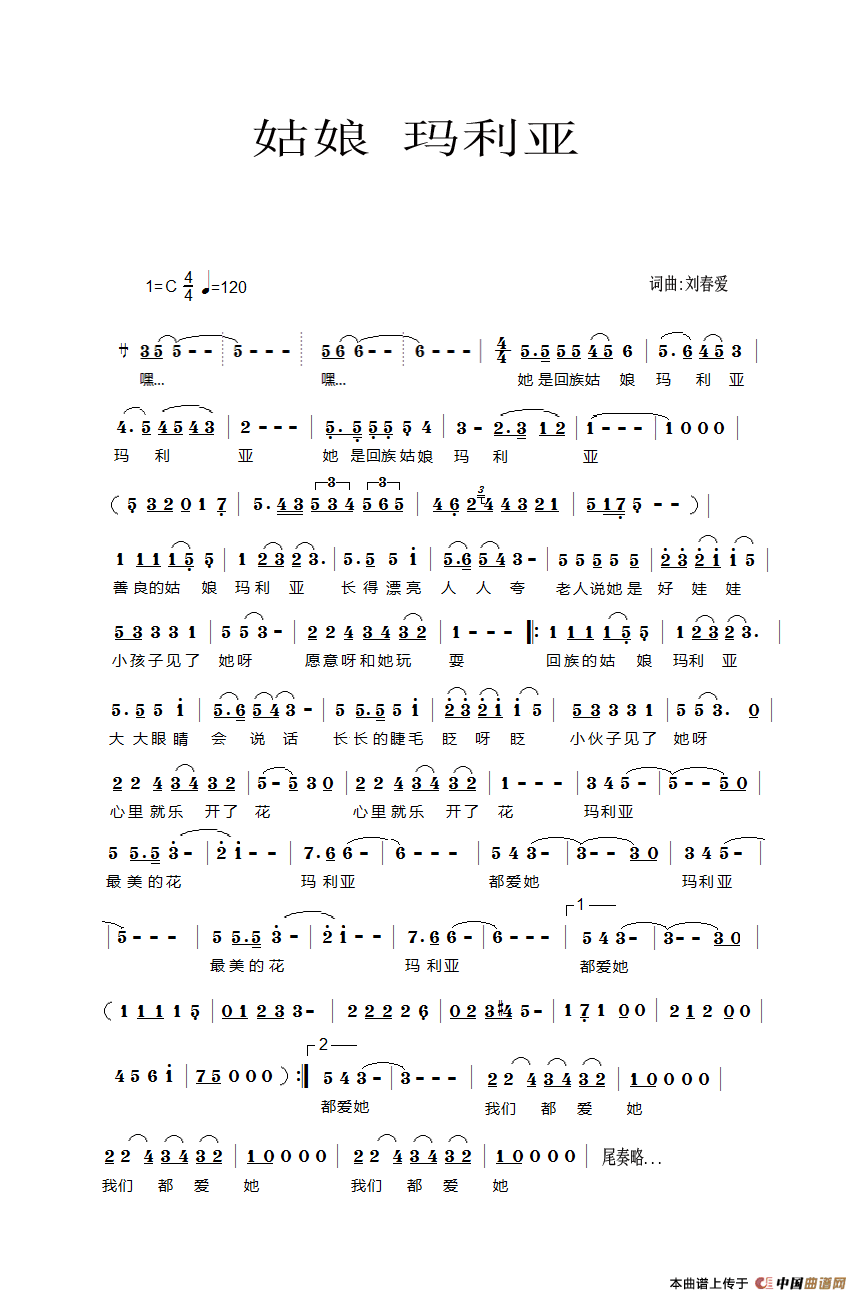 关于《姑娘玛利亚》曲谱的评论