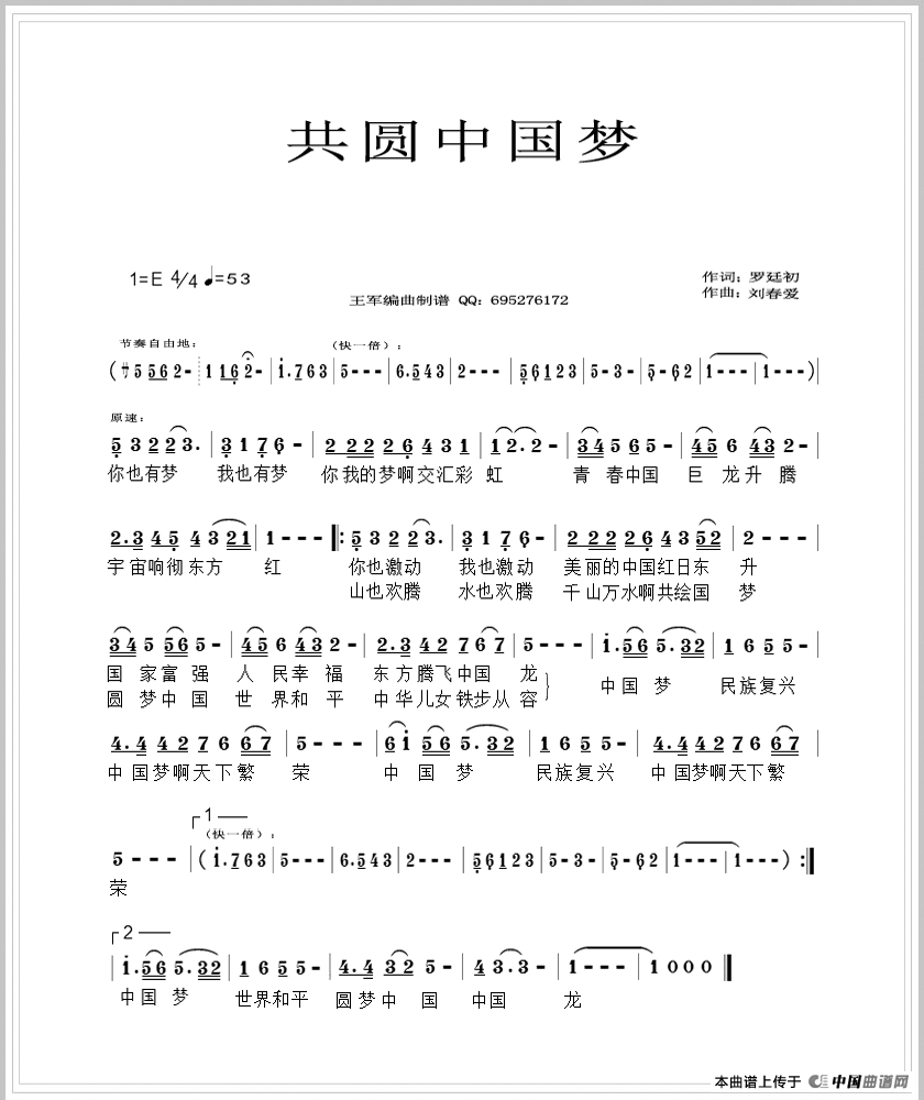 当前位置: 首页 谱友园地 谱友上传 共圆中国梦