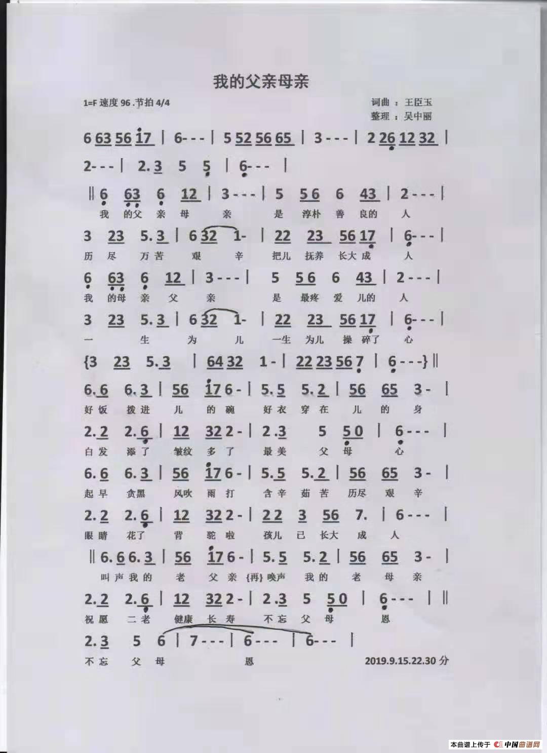 关于《曲谱我的父亲母亲》曲谱的评论