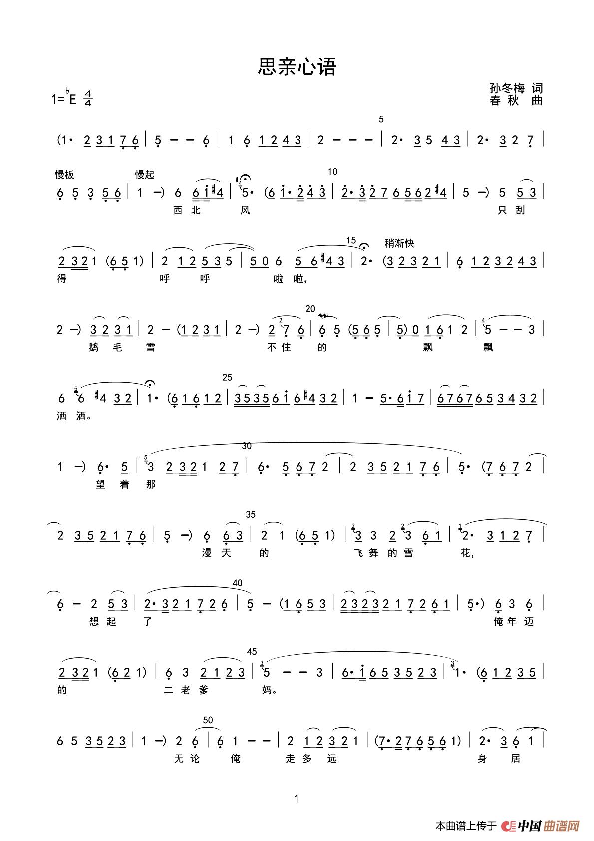 关于《思亲心语》曲谱的评论