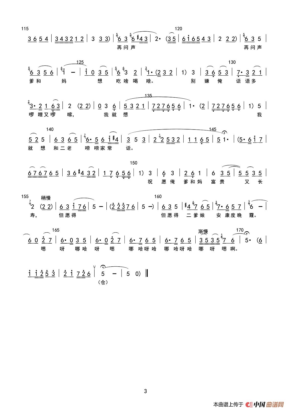 先问候 恁二老 身体可安康