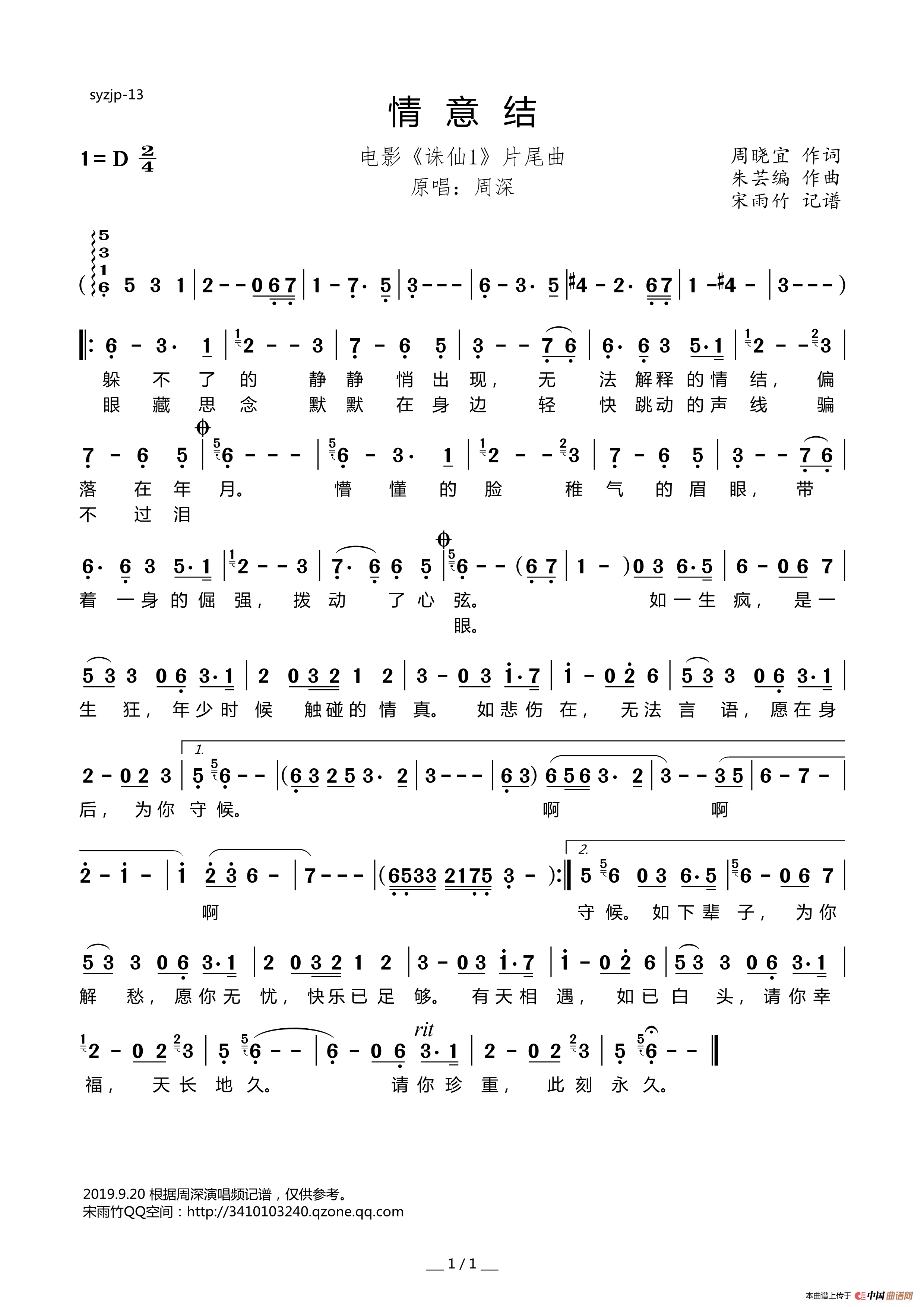 关于《情意结》曲谱的评论