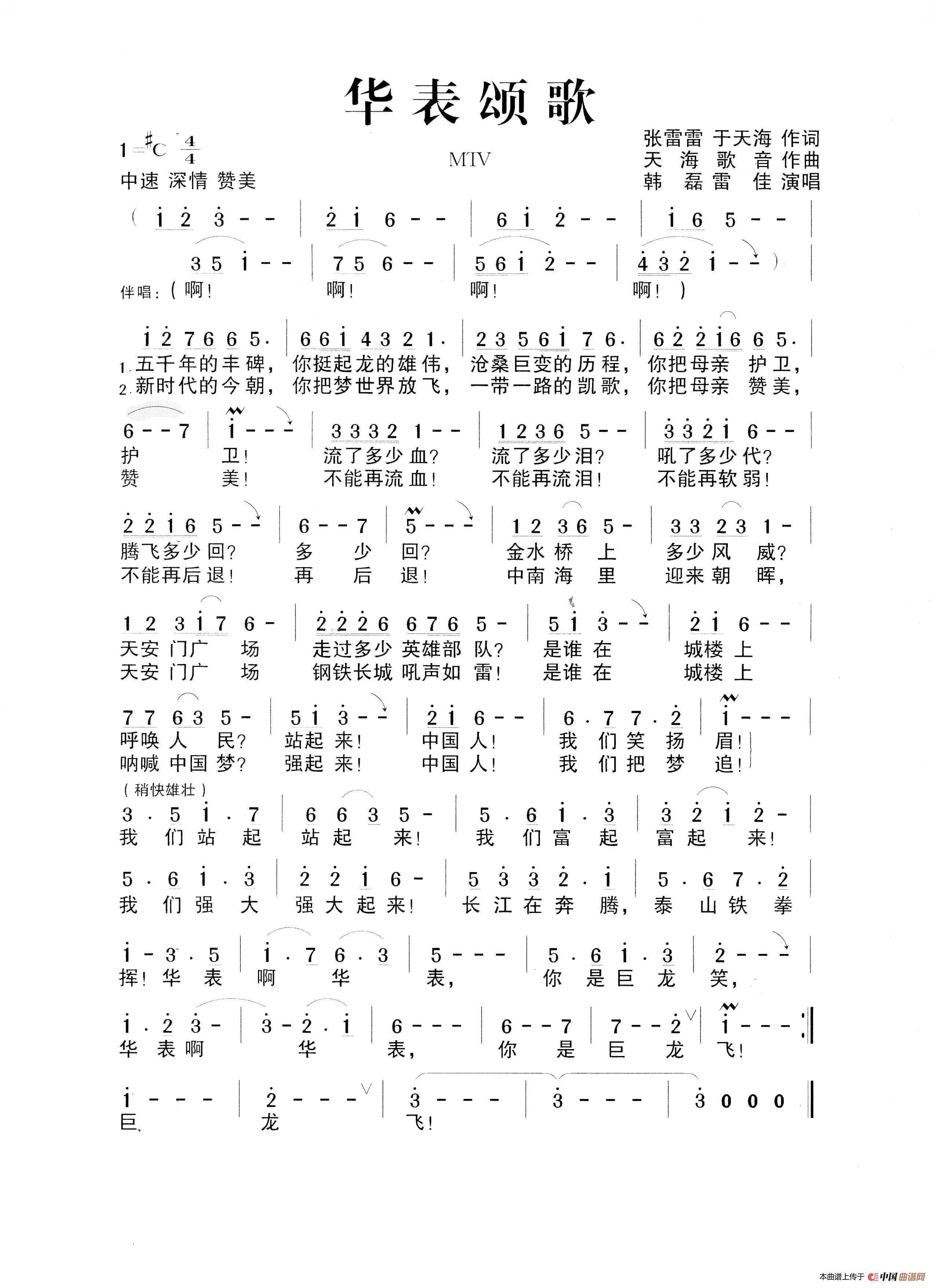关于《华表颂歌》曲谱的评论
