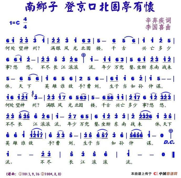关于《南乡子 登京口北固亭有怀》曲谱的评论