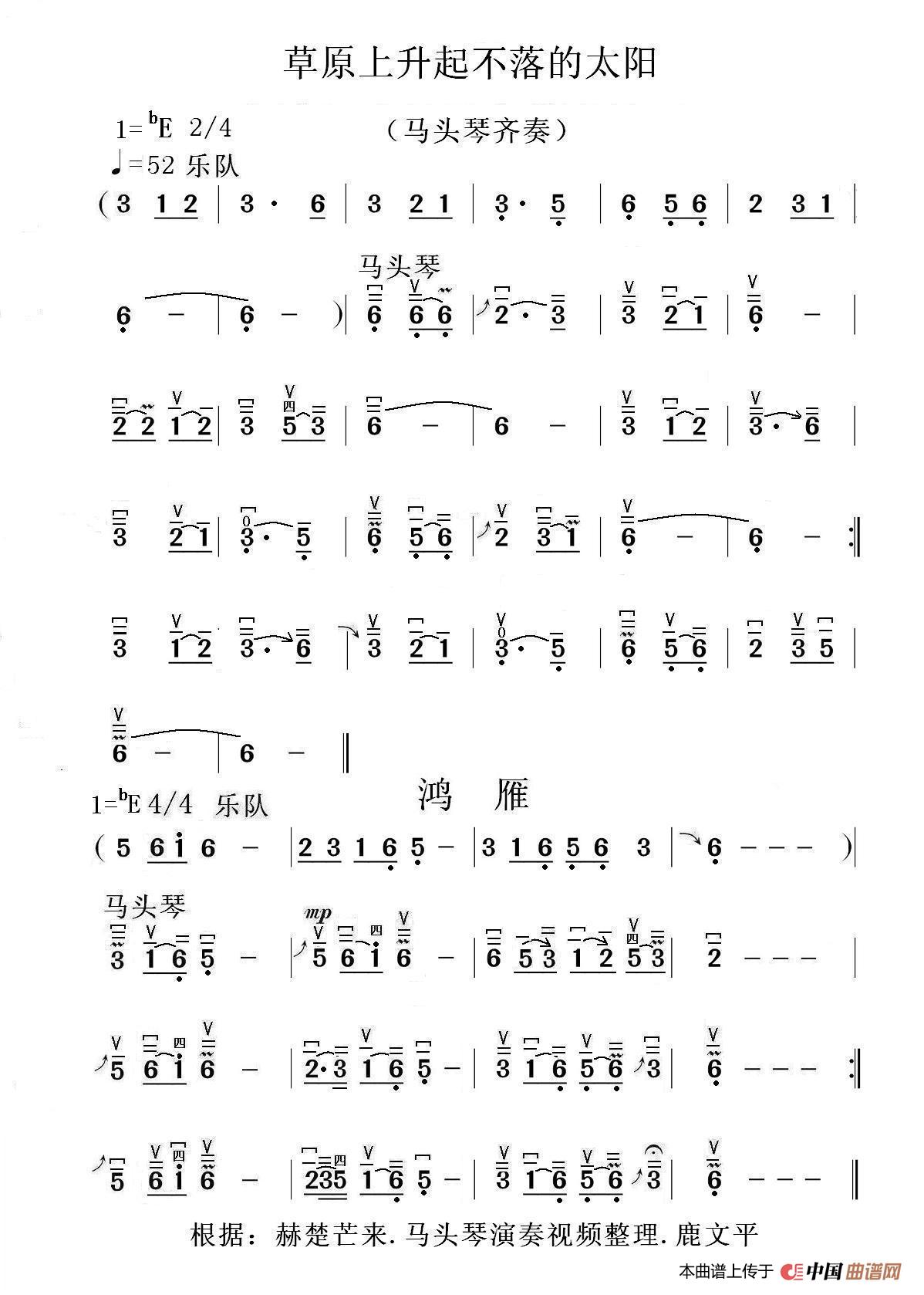 关于《马头琴曲》曲谱的评论